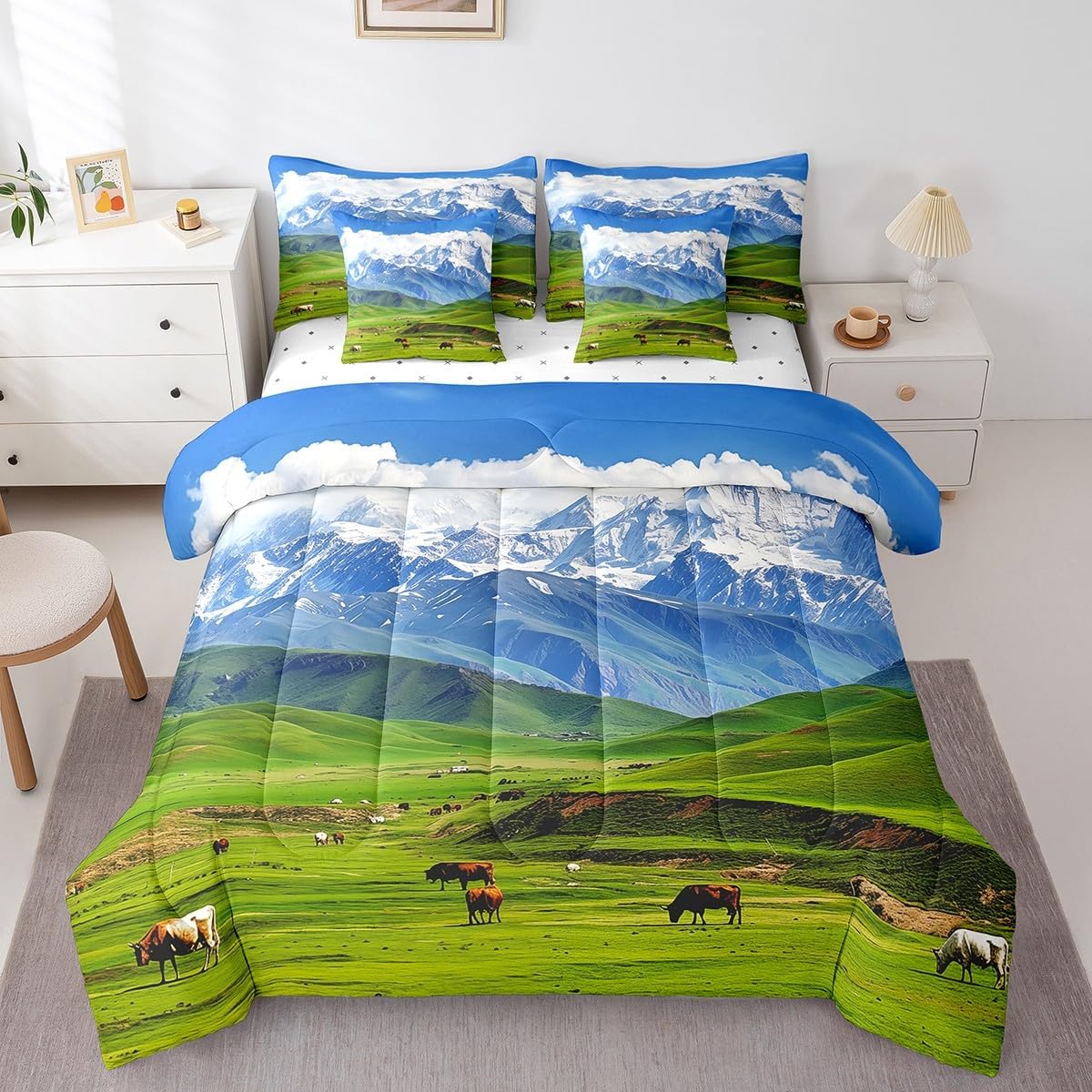 Colorful Makeover to Your Life Various size and color options, there are always decor room. Size Options: 7 Pieces Twin Size,1 Down Comforter 68"x 90", 1 Fitted Sheet 39"x75"x16", 1 Flat Sheet 96"x66", 2 Pillow Cases 30" x 20",2 Throw Pillow Covers,Covers Only. 18"x 18". 7 Pieces Full Size ,1 Down Comforter 79"x 90", 1 Fitted Sheet 54"x75"x16", 1 Flat Sheet 96"x81", 2 Pillow Cases 30" x 20",2 Throw Pillow Covers,Covers Only. 18"x 18". 7 Pieces Queen Size,1 Down Comforter 90"x 90", 1 Fitted Sheet 60"x80"x16", 1 Flat Sheet 102"x90", 2 Pillow Cases 30" x 20",2 Throw Pillow Covers,Covers Only. 18"x 18". 7 Pieces King Size,1 Down Comforter 104"x 90", 1 Fitted Sheet 78"x80"x16", 1 Flat Sheet 106"x90", 2 Pillow Cases 30" x 20",2 Throw Pillow Covers,Covers Only. 18"x 18". Decoration: For your mom, dad, sister, brother, grandma, wife, husband, and all other beloved with many surprising designs. You can find a design for everybody and every interest in our collection. Your Home,You Decide Different types of bedding sets could bring rooms in different styles. Also, rooms in different styles needs different types of bedding sets