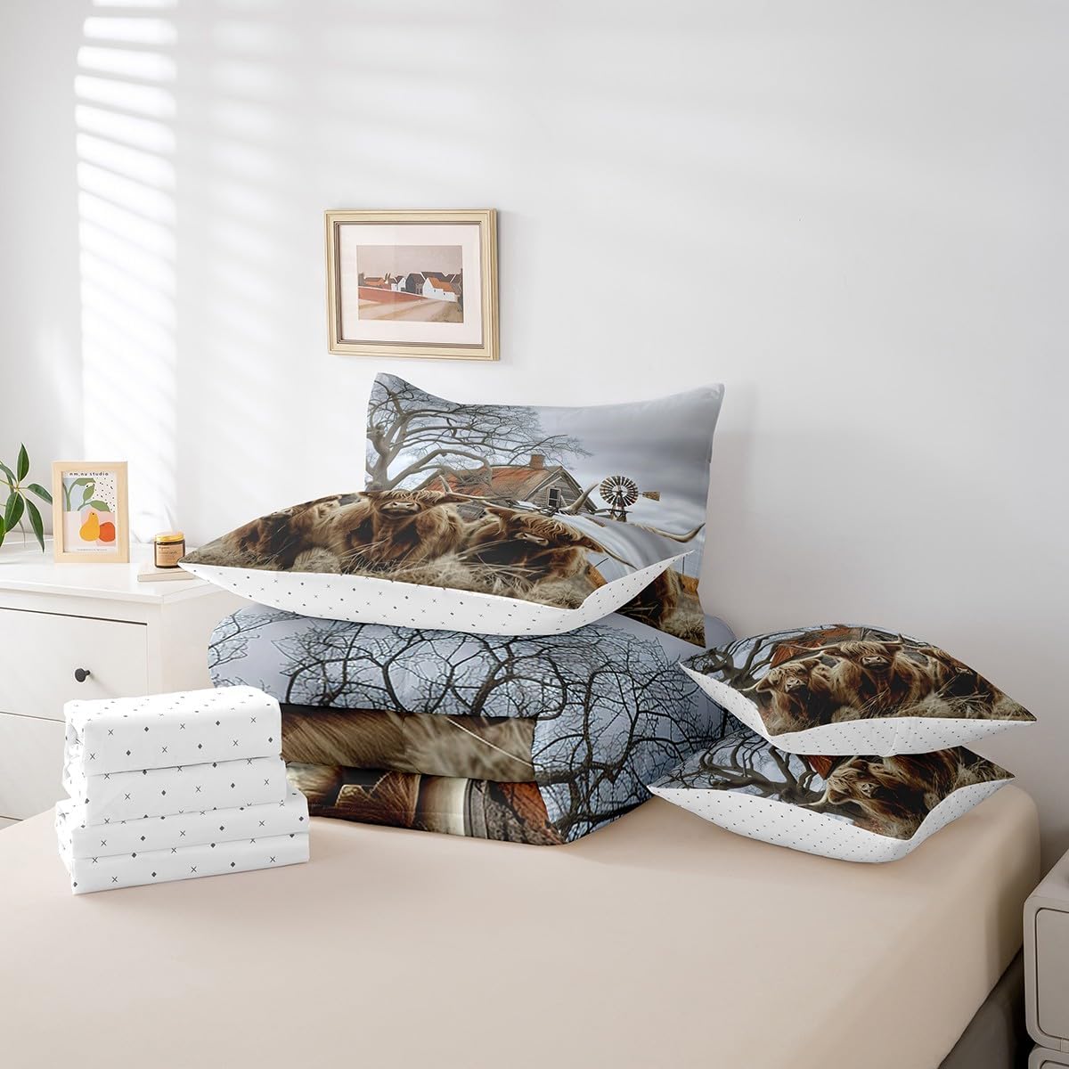 | Included Components | 1 Fitted Sheet 78"x80"x16", 1 Flat Sheet 106"x90", 2 Throw Pillow Covers 18"x18", Comforter, Pillow Cover |