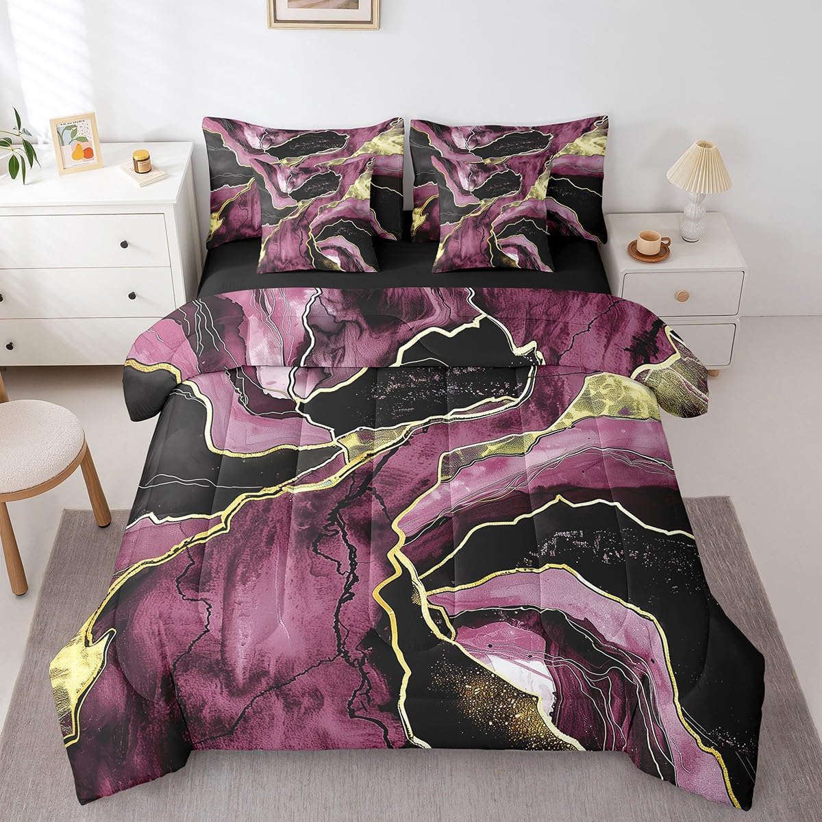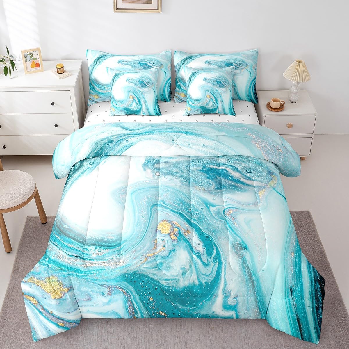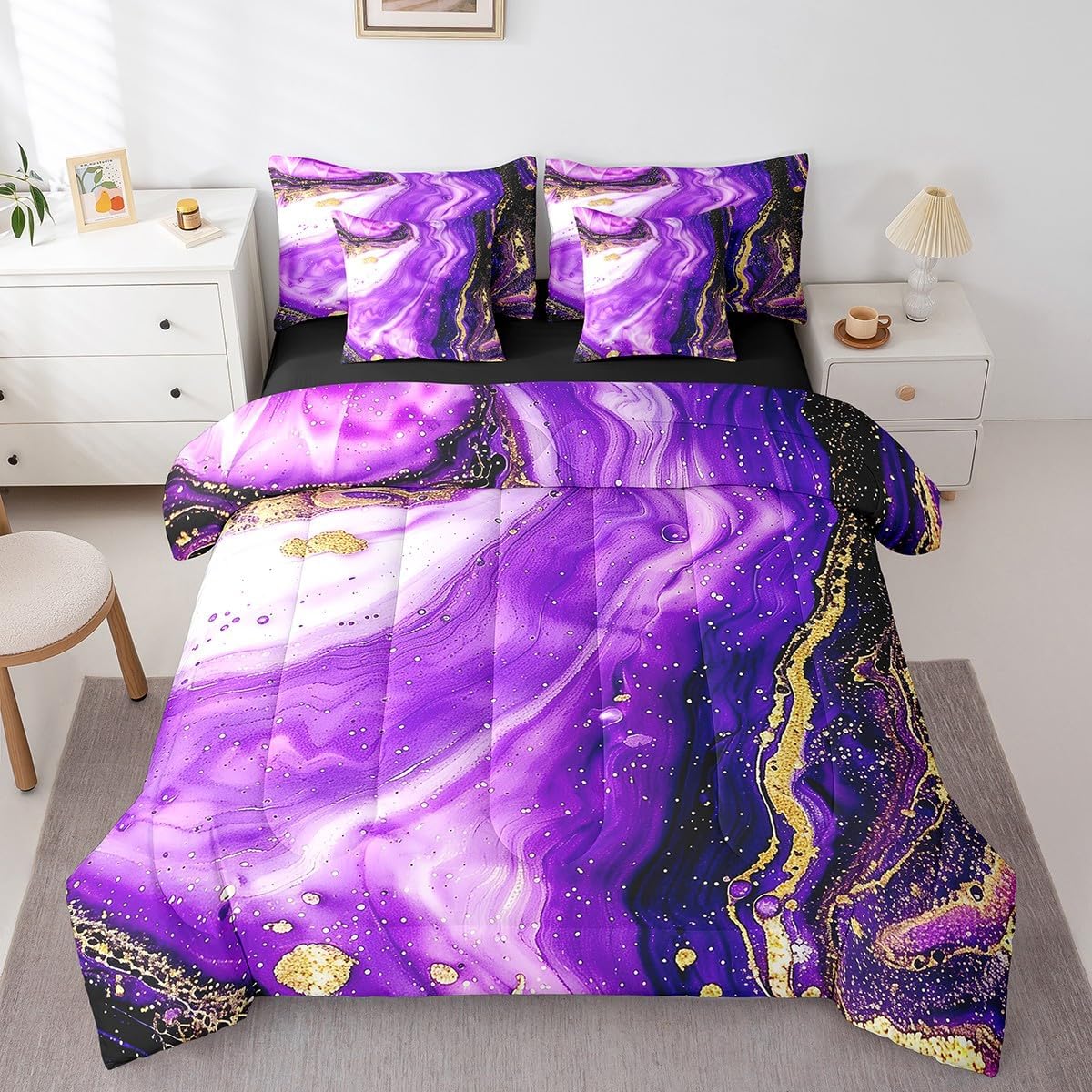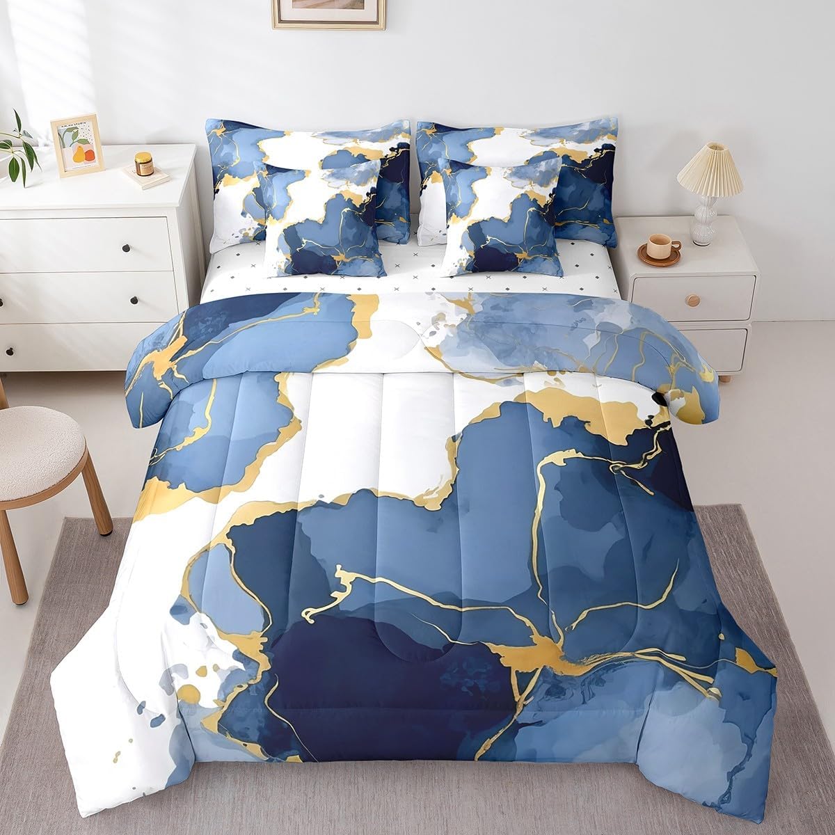 | Included Components | 1 Comforter 79"x90", 1 Fitted Sheet 54"x75"x16", 2 Throw Pillow Covers 18"x18", Flat Sheet, Pillow Cover |
