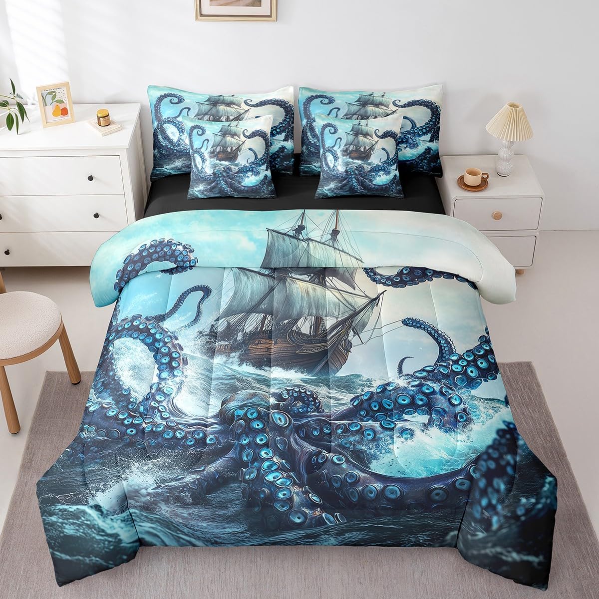 Welcome to our store. Size Information Twin size:1 Comforter (68" x 90"), 1 Fitted Sheet (39" x 75" + 16"), 1 Flat Sheet (67" x 96"), 2 Pillowcases (20" x 30"), 2 Throw Pillow Covers (18" x 18"). Full size:1 Comforter (80" x 90"), 1 Fitted Sheet (55" x 75" + 16"), 1 Flat Sheet (81" x 96"), 2 Pillowcases (20" x 30"), 2 Throw Pillow Covers (18" x 18"). Queen size:1 Comforter (90" x 90"), 1 Fitted Sheet (60" x 80" + 16"), 1 Flat Sheet (102" x 90"), 2 Pillowcases (20" x 30"), 2 Throw Pillow Covers (18" x 18"). King size:1 Comforter (104" x 90"), 1 Fitted Sheet (78" x 80" + 16"), 1 Flat Sheet (106" x 90"), 2 Pillowcases (20" x 36"), 2 Throw Pillow Covers (18" x 18"). Versatility Our line of family bedding offers bold colors, trendy patterns, and the softest fabrics you’ll find anywhere. Our comforter, sheets and pillow cases are all easy to care for. You’ll find a wide variety of sizes and design options to make your kid happy, no matter what their style. Tuck your children in for a sweet night of slumber, with Kids Rule. Safe Material We make your life (and ours) a little bit easier with durable fabrics that maintain its softness and vibrant colors wash after wash. Washing Instructions Machine Wash Separately In Cold Water,Hang Dry,Do Not Bleach. Occasion The item is not only perfect for your home (bedroom, guest room, living room, etc) or RV, but also for holidays or anniversaries (Chiristmas, New Year, Easter, Father's Day, Mother's Day, Teachers' Day,Halloween, Thanksgiving day, birthday) for people who you love (your families, friends, relatives, boyfriend,girlfriend)."
