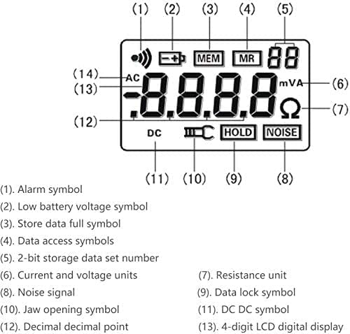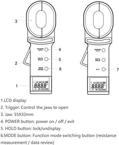 ❤❤Shipping Policy : Battery Not Included During the Shipping❤❤ Product Main Function: 1. Measurement of earth resistance,loop resistance 2. Resistance Measure Range: 0.010Ω~1000Ω 3. Current Measure Range: 0.00mA~30.0A 4. Data Storage: 99 sets 5. Alarm Threshold Setting:1-199Ω 6. Alarm Function: alarm symbol dispaly 7. CT Size: 55mmX32mm Technical Specifications Resistance Range :0.010Ω~1000Ω Current Range:0.00mA~30.0A Resistance Resolution:0.001Ω Current Resolution:0.05mA Data Storage:99 sets Alarm Symbol Indication:PressALkey to turn on / off Alarm Threshold Setting Range: Resistance:1~199Ω; Current: 1-499mA Power Supply:6VDC 4 PCS LR6 lkaline batteries Temperature: -10℃-55℃;10%RH-90%RH LCD Size: Digits LCD display, Screen: 47mm×28.5mm Clamp Size:55mm×32mm Clamp Opening Size:≤50mA, Continuously working for 30 hours Tester Weight:1130g Tester Dimension:275mm×85mm×56mm Protection Level:Double insulation Structural Feature:Clamp CT Shift:Automatic shift External Magnetic Field/Electrical Field:<40A/m;<1V/m Single Measurement Time:0.5 second Resistance Measurement Frequency:>1KHz Measured Current Frequency:50/60Hz Automatic
