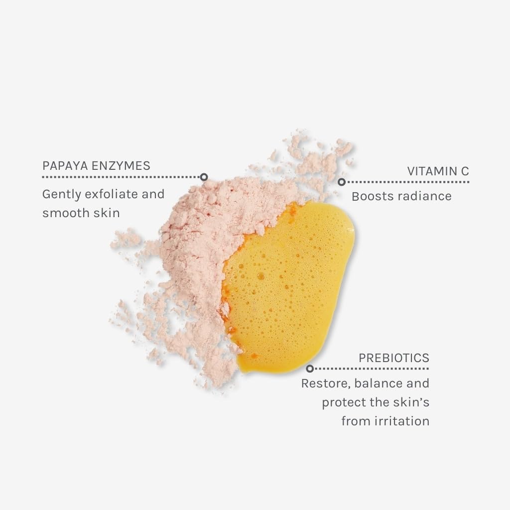 Cleanse your skin and boost radiance with our innovative Vitamin C powder cleanser. Watch this beautiful exfoliating cleanser turn from pink to orange on contact with water as it gently cleanses skin to reveal an instantly more radiant complexion. Formulated to support the skin and strengthen the skin barrier whilst nourishing it, and Papaya enzymes and stable Vitamin C for dull skin. Fragranced with zesty organic lime and sweet orange essential oils.