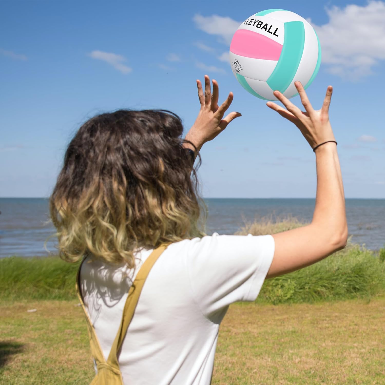 Specifications:6 pack volleyballs with a pumpEach volleyball is sized as followSize: Circumference: 25.6-26.4inWeight: 0.57-0.62lb (Lightweight Size 5 volleyball)Material: PUDurable multi-layer construction:The outdoor volleyball maintains high air pressure, does not blow up under strong impact, has excellent durability, and does not leak air even when used for a long time.Light and soft surface:The soft volleyball adopting soft PU material, it is soft and lightweight for volleyball beginners, absorbs impact, reduces pain when receiving, and does not hurt when touching the body.Air-tight inlet:The pool volleyball has a sturdy inlet, so it is easy to put air in and hard to leak air. It has a waterproof valve, so it can be washed with water when it gets dirty. (※ It will be delivered with the air removed.)Comfortable touch:It is used for volleyball beginners, adult who are not good at balls and women's volleyball because of its soft skin. It has excellent elasticity and absorbs impact, so you will feel it is less burdensome when you play volleyball.Thick, high quality skin with excellent durability:The indoor volleyball uses a high quality PU skin which is made thicker, so it is hard to break, and even if you practice for a long time, there is no risk of the surface breaking, so it is recommended as a practice ball for school physical education.Waterproof and easy to care for:The material of volleyball is waterproof, so the skin won't come off even if it gets wet, so you don't have to worry about breaking the ball even if it rains. You can also enjoy the beach.[Notes]*This product is delivered with air removed.