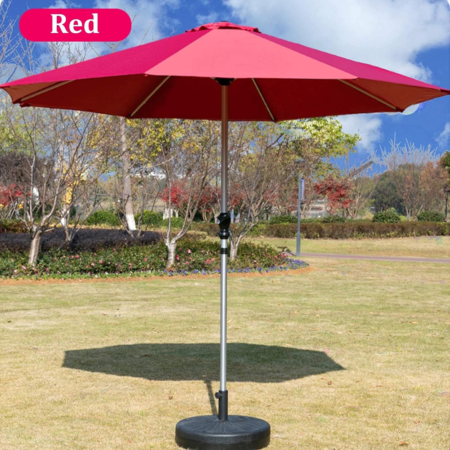 You can enjoy your outdoor living and remain cool with this classic market umbrella. Our outdoor patio umbrella blocks UV rays completely and creates a shady place for your relaxation and recreation. You can enjoy your picnic or cafe with this garden parasol> > Specifications:> - Type: Patio umbrella, beach umbrella, outdoor umbrella> - Material: Polyester shade canopy + steel frame> - Color: Red> - Umbrella Diameter: 2.7m/8.9ft> - Height: 2.5m/8.2ft> - Opening Mechanism: Hand Crank> - Push Button Tilt: No> - Base: Not included> - Weight: 6kg/13.2lbs> - Be Applicable: > > Features> - Heavy Duty Frame: steel pole and ribs resist rust, scale, wind, and wear for years to come> - Uv Protection: patio umbrella is made of material have waterproof, sun-proof, -proof> - For Anyoccasion: Turn your outdoor dining area into a shaded lounge for family and friends> > Tips:> - Warning: Please close your umbrella in extreme wear or strong wind> - Due to light and screen difference, item's color may be slightly different from pictures> - Please allow 1-2 cm differences due to manual measurement{/p}