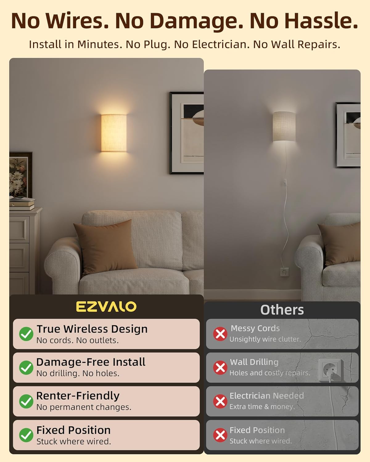 | Included Components | 2x LED Light Bar, 2x Fabric Linen Shade, 1x Remote control, 2x USB-C Charging Cable, 1x Instruction Manual, 2x Iron Sheets, 5x Screws, 5x Expansion Tubes, 4x Adhesive Hooks, 2x Adhesive Indicator Stickers |