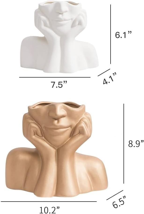 Ceramic Vase Female Form Vase Decorative Flower Vase for Home Decor Living Room Office Centerpiece Table and Wedding Face Figurines Ornament This statues for home decor is designed with a abstract face features the shapes of eyes, nose, and mouth. This modern vases for home decor works with a bunch of fresh or artificial blooms, adding a touch of freshness and artistry to anywhere you like Material Made of high-quality ceramics and experienced a high temperature, the tall vase has a good ability of corrosion resistance, waterproof, giving your plants a safe and cozy home Versatile Use as bud vase, tabletop planter pot, flower containers, boho home decor and gift. Ideal for bedroom, living room, dinner table centerpiece, garden patio, office, wedding and restaurant decor, your tabletop will not be dull anymore with these modern vase Gift Idea Can give the small white vase to your family and friends as a gift to share good time with them. Put a small bouquet of flowers for Mother's Day or her birthday Package 1 x Face Art Vase Attention: 1. Please allow slight size deviation due to manual measurement 2. Please allow slight color differences due to different computer and site settings