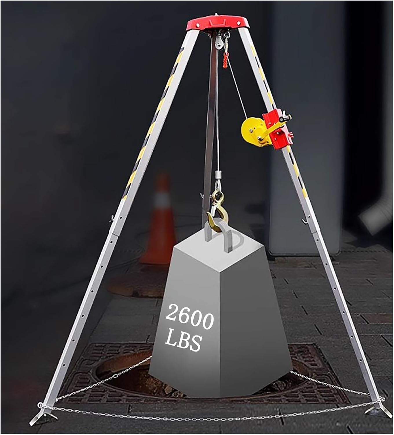 Emergency Firefighting Rescue Rope System: Product Description: This confined space entry kit has a large load capacity with a durable iron and alloy construction, providing access or fall protection in confined space, such as well, sewer, tunnel, and other places. Can complete your limited space work. - Due to logistics and transportation reasons, the product is divided into two packages Specification: - Material: Aluminum Alloy - Man Winch Efficiency: 8:1 - Adjustable Height: 1.41~2.14m/4.6~7ft - Winch: 1200LBS , 1800LBS , 2600LBS - Safety Factor: 10 - Hand operated handle force: ≤ 500N - 1200LBS winch 300kg/661lbs Load-Bearing 20m/65.6ft Steel Cable Length Dia 5mm Feature : - Considerable load capacity - 4.6~7ft adjustable tripod legs - Easy to disassemble and install - Convenient to carry with the car - Retractable tripod adjust height freely - Self-locking winch & anti-dropping device - Perfect for usage in well, sewer, underground pipe, and tunnels. - Adjustable feet, can be installed in wellheads, pits and is not limited by the Unevenness of the ground. Package Include: 1 × Confined Space Tripod Kit + Safety Belt Notice: 1. Product size is purely manual measurement, there is 1-3cm error, please prevail in kind. 2. Please be reminded that due to the light and screen difference, the item's color may be slightly different from the pictures.