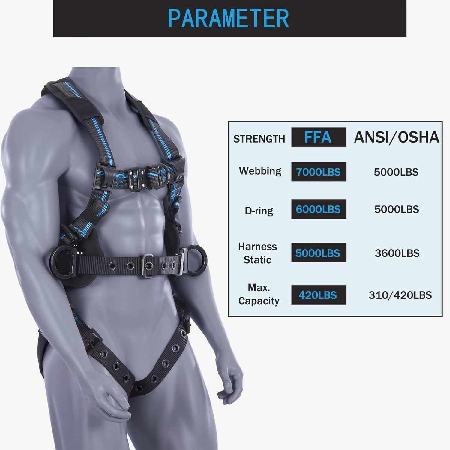 🛠️Falls are one of the top sources of workplace injuries, causing hundreds of deaths each year in the construction industry alone. That's why it's important to put safety first with the best fall protection equipment. When you're working at height, you need to be able to trust your personal protective equipment. FH-FALLARREST Fall Protection elevates worker safety to new heights with quality products, people and service. With harnesses designed to comply with industry standards and adapt to the needs of today's workforce, we're committed to making products that help employers bring workers home safely. 🛠️SPECIFICATIONS 🛠️Capacity: 310 Lbs. 🛠️Hardware: Alloy Steel 🛠️Braiding: Upgraded Braided Multi-Fiber 🛠️Webbing Materials: 100% Heavy-Duty High-Strength Polyester Webbing 🛠️Applicable Standards:Meets ANSI and OSHA. 🛠️High Quality, Fully Tested Design Meets ALL Applicable ANSI and OSHA Standards 🛠️Webbing must be inspected for tears, cuts, fraying, abrasion, discoloration, or other signs of wear and damage. Sewn terminations must be secure, complete, and not visibly damaged. 🛠️If the item or style cannot fulfill your satisfaction, we offer Free Returns within 180 days! Besides, we will provide you professional customer service related to all your questions of our products. 🛠️Founded in 2010, FHFallArrest has been passionate about providing workers with peace of mind when working at heights. As a full-service fall protection provider, we specialize in productive solutions that combine groundbreaking service with feature-rich products and safety. Our portfolio includes industry-leading harnesses, belts, rescue products, retractable horizontal lifelines, related accessories and more. We are committed to providing the safest and most advanced fall protection products in the industry.