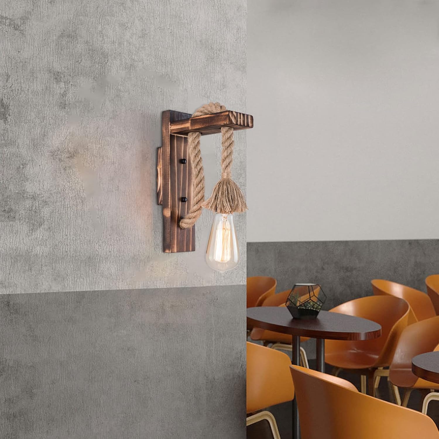 About this item:LOOK: A stunning High quality wood shape mixes with to add a trendy element Matte process shade adds a warm vintage feeling. PRODUCT DIMENSION :rope length 6.69" high . Backplate is11.41" high x Lampshade 7.08" wide. VARIOUS BULBS COMPATIBLE: Uses one E26 light bulb. Fully compatible with incandescent, LED, CFL, halogen bulbs, (40W max, Bulb NOT Included).Specifications:Materials: Iron plated+Wooden backboard, Intended Use: indoor use.Style: Rustic / Classic / Modern.Installation Type: Hardwired.Voltage: 110 ~ 120VBulb Type: E26 Base(Bulb NOT included)(Max.40W)-ompatible with LED bulb, Incandescent or CFL bulb.Features:- Not recommended to install holder for wet locations, reduces the loss of the bulb and prolongs the service life of the bulb. - Easy installation. Includes Installation instruction and all mounting hardware. Hard-wired. This is not a plug-in design.What you get:1 x Unassembed wall light(Bulb NOT Included)1 xScrews setsTips:-Please make sure the light is securely supported and is disconnected from power when installing.