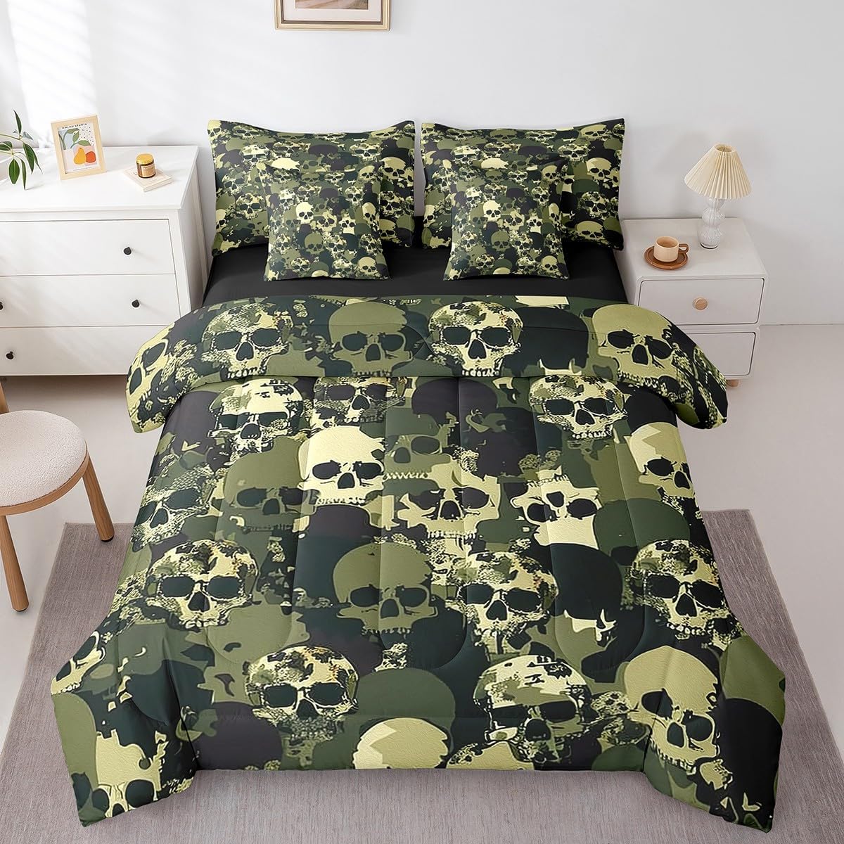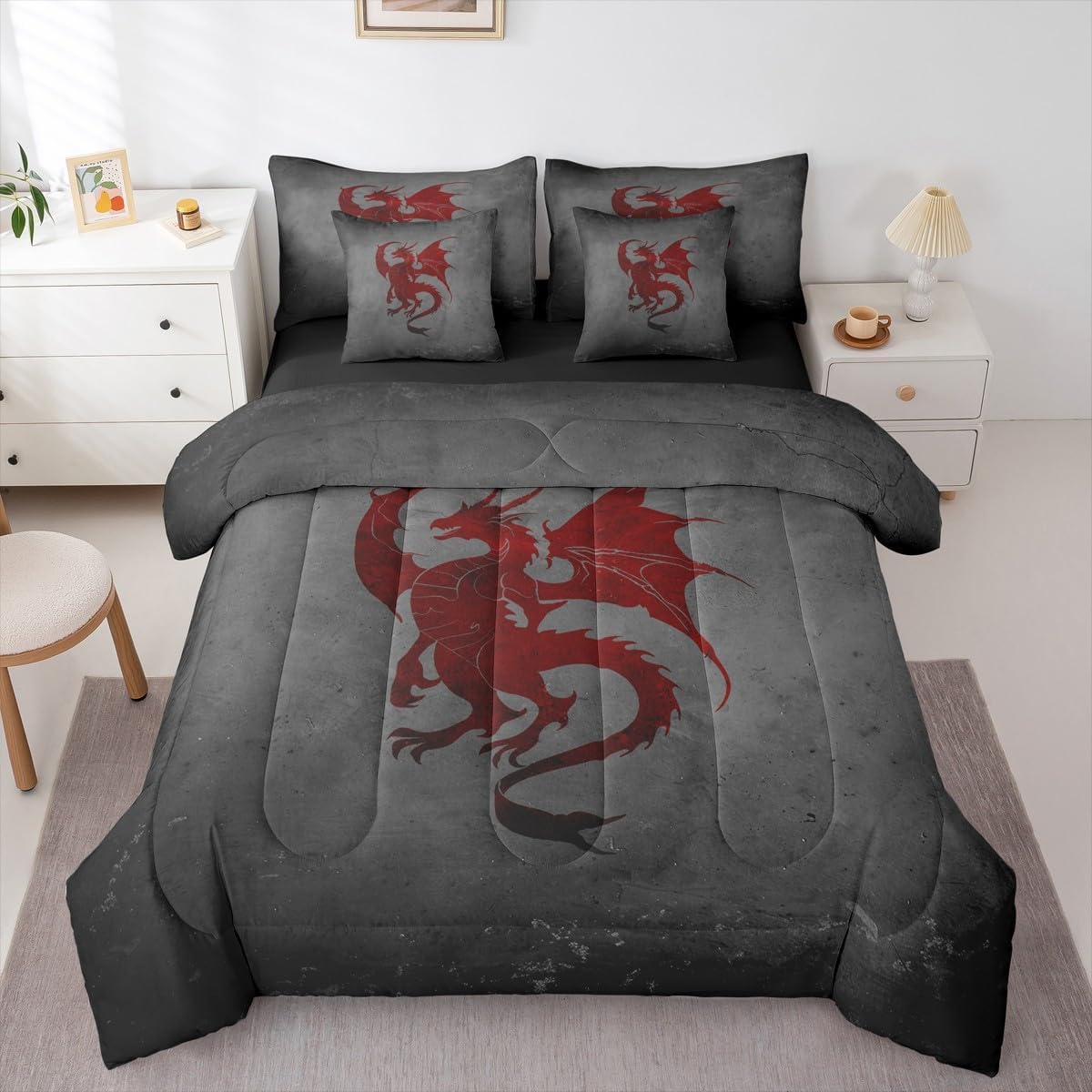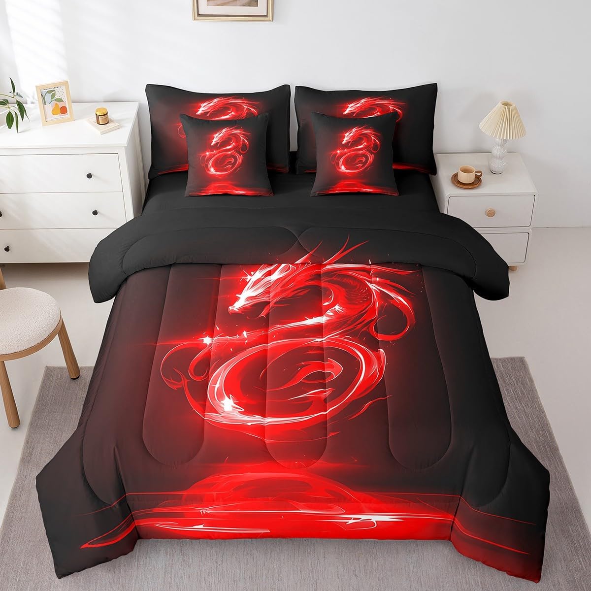 Why choose us Everyone has their own preferences; we develop different styles and different designs to suit the hobbies and aesthetics of different people; we look forward to bringing more joy and fun into your life; special design for special you; it's not just a simple home product, it's a way of life Brighten up your bedroom with this bed linen set; this bright and colourful bedding set features vibrant colours and special print pattern; turn the reversible duvet set over for a new look against a modern geometric background Convenient to use due to polyester which is super soft and comfortable; this all year round bedding is designed to be lightweight and breathable for a good night's sleep; a practical product for homes, dormitories, hotels, guest rooms Twin bedding set includes 1 twin comforter: 68"x90", 1 fitted sheet: 39"x75"x16", 1 flat sheet: 66"x96", 2 Pillowcases: 20"x30", 2 square pillow covers: 18"x18", perfect for a twin size bed. Full bedding set includes 1 full comforter: 79"x90", 1 fitted sheet: 54"x75"x16", 1 flat sheet: 81"x96", 2 Pillowcases: 20"x30", 2 square pillow covers: 18"x18", perfect for a full size bed. Queen bedding set includes 1 queen comforter: 90"x90", 1 fitted sheet: 60"x80"x16", 1 flat sheet: 90"x102", 2 Pillowcases: 20"x30", 2 square pillow covers: 18"x18", perfect for a queen size bed. King bedding set includes 1 king comforter: 104"x90", 1 fitted sheet: 78"x80"x16", 1 flat sheet: 90"x106", 2 Pillowcases: 20"x36", 2 square pillow covers: 18"x18", perfect for a king size bed. In addition to this comforter set with sheets, there are curtains, area rugs, shower curtains, blankets and other furniture with the same design waiting for you to explore. Whether it is for birthday of your family or friends, relatives, or just for yourself, the item should be interesting and authentic.