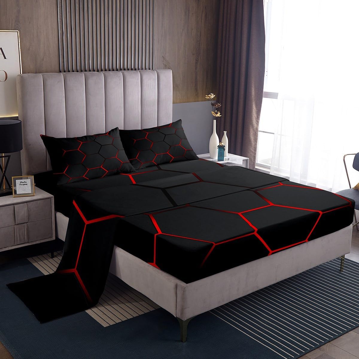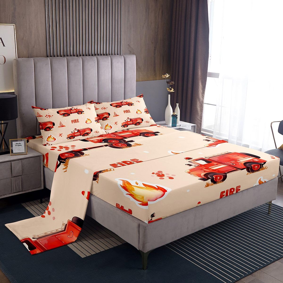 our bedroom decor bed sheets set look with the vivid stylish and elegant print specifications: Twin Sheet Set: 1 twin fitted Sheet 39 inch x75 inch x16 inch, 1 twin flat sheet 66 inch x96 inch and 1 pillowcase 20 inch x30 inch Full sheet set: 1 full fitted sheet 54 inch x 75 inch x 16 inch, 1 full flat sheet 81 inch x 96 inch and 2 pillowcase 20 inch x 30 inch Queen sheet set: 1 queen fitted sheet 60 inch x 80 inch x 16 inch, 1 queen flat sheet 90 inch x 102 inch and 2 pillowcase 20 inch x 30 inch deep pocket fitted sheet with elastic all around materials: microfiber fabric, lightweight and soft design: With vibrant and novelty designs and 3d print technique, this duvet cover is very suitable as room decor for boys and girls care instructions dry clean preferred; machine washable, use cold water on gentle cycle, tumble dry low