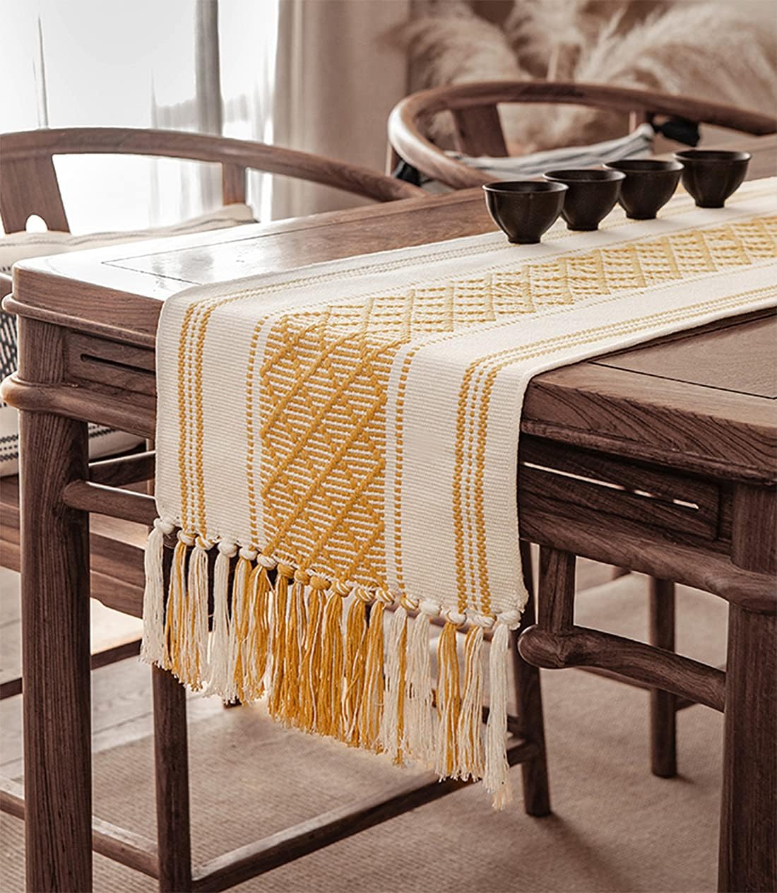 Fennco Styles Diamond Stitch Tassel Design Cotton Blend Table Runner <> Bring texture touch and dimension to your table décor with the Diamond Stitched Table Runner. Features a stitched design that creates a diamond motif for a distinct, eye-catching look and is easy to styles with other décor elements, the tassel detailing will make this the most fun piece in your home. This cotton blend runner adds a stylish accent to your dining space, combine the neutral tones with the rest of your table linens for a creative and chic look.PRODUCT DETAILS :Dimensions: 14 x 102 inches Material: cotton, polyester Care Instructions: cool machine wash, delicate cycle. do not bleach, tumble dry low. medium iron.Our Philosophy:At Fennco Styles you can shop a carefully selected range of home, lifestyle and gift products. We believe our homes should be reflections of the journeys we take. Our personal spaces deserve designs with a soul, a story, and a purpose. Our lifestyle brand offers inspired living through high-quality products, exclusive designs, and timeless style. We aim to source ethically, looking for products that are made from sustainable materials and designed to last and seeking out Makers that are conscious of their impact on the environment.