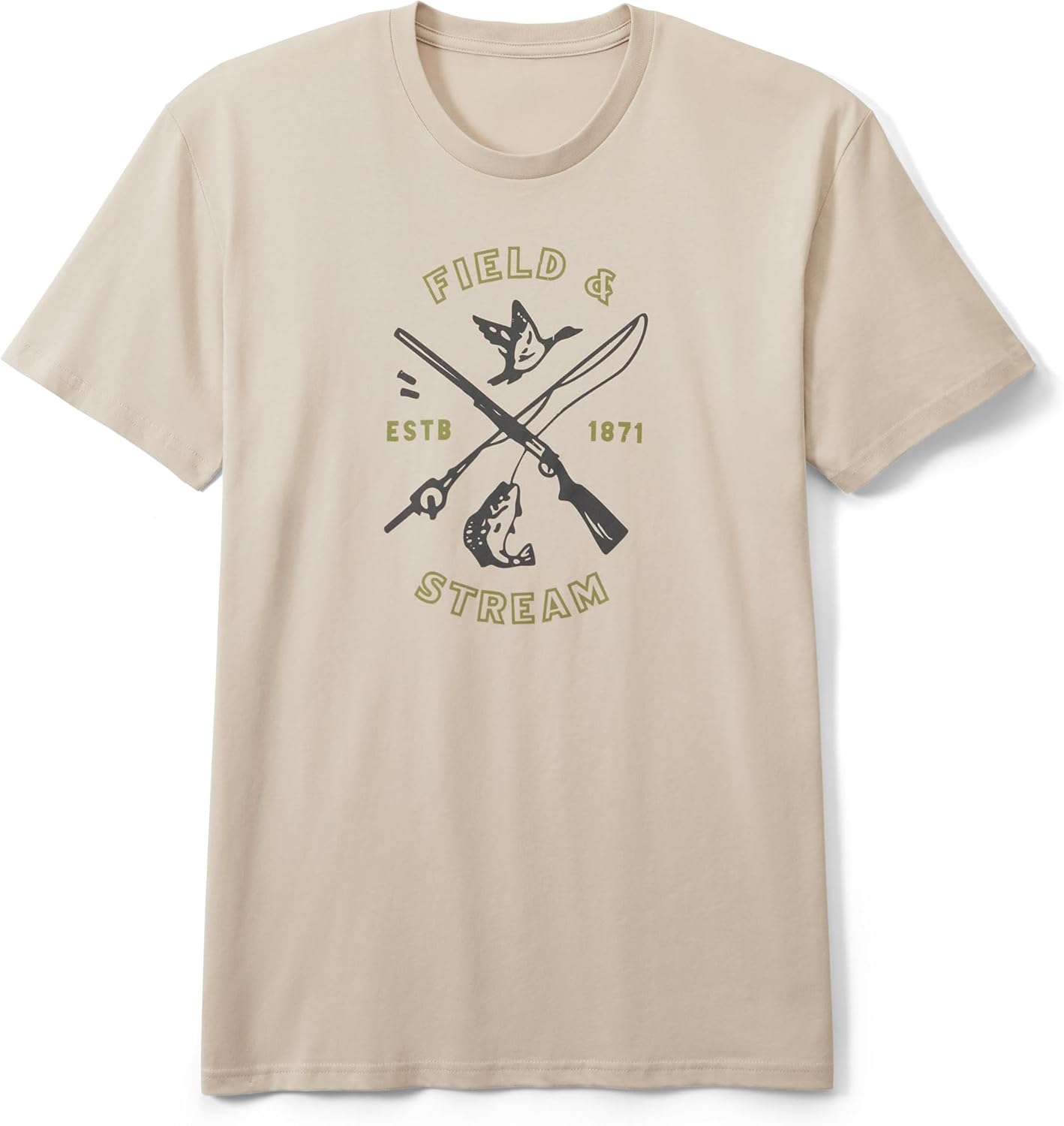 Our vintage Field & Stream Heritage logo dons the front of this cozy tee shirt. 100% cotton fabric provides comfort as you casually work your way to a well-deserved weekend. The clean graphic logo harkens back to an original F&S journal. Plain back.