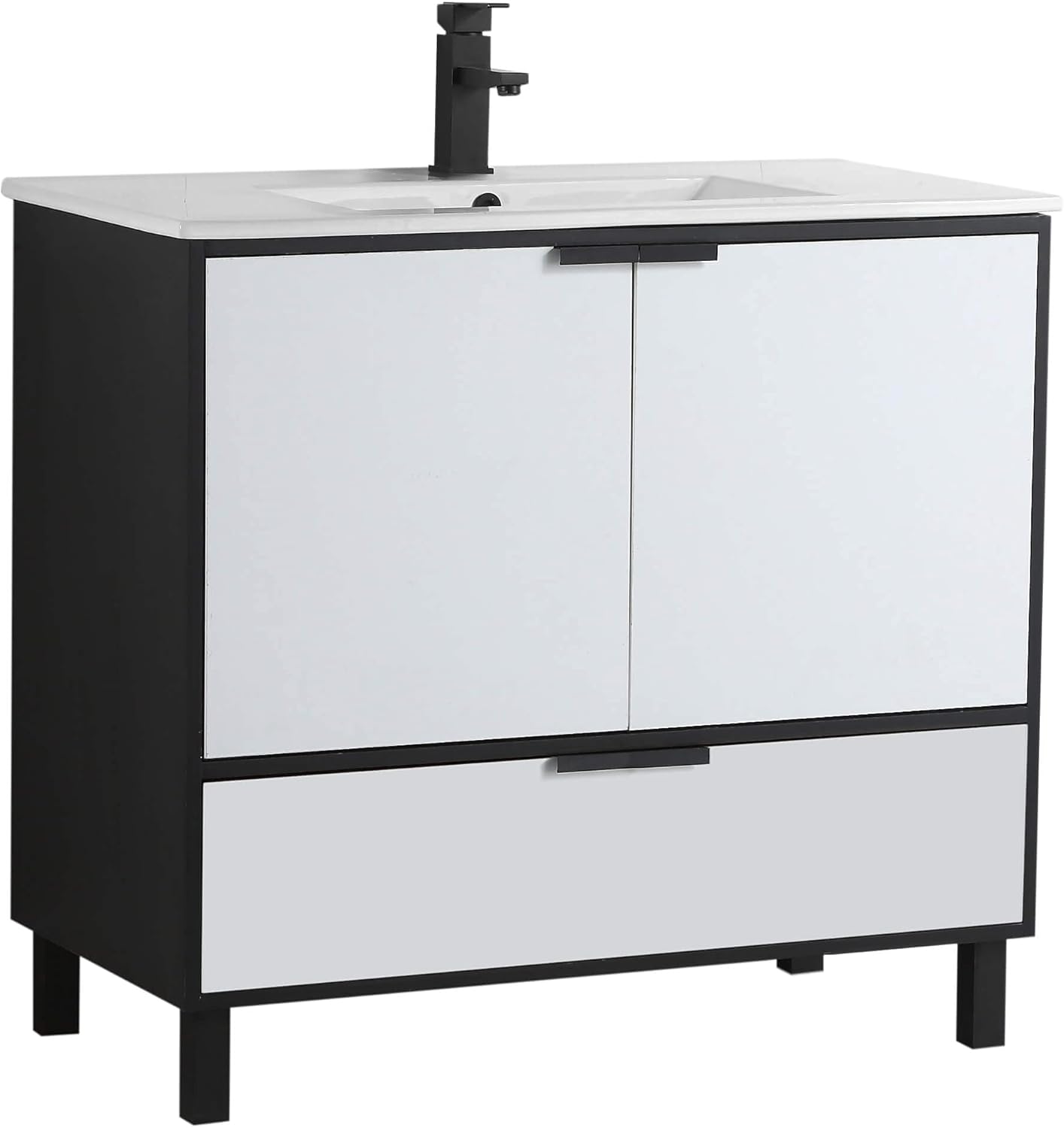 Discover the perfect blend of style, function, and accessibility with the Fine Fixture Hamilton 24 inch bathroom vanity with sink. This premium bathroom vanity brings sophistication and ease of use into one elegant package. Built from high-quality plywood with a matte white finish, it's designed for modern bathroom cabinets freestanding and meets ADA-compliant requirements for accessible spaces.Discover the perfect blend of style, function, and accessibility with the Fine Fixture Hamilton 36 inch bathroom vanity with sink. This premium bathroom vanity brings sophistication and ease of use into one elegant package. Built from high-quality plywood with a matte white finish, it's designed for modern bathroom cabinets freestanding and meets ADA-compliant requirements for accessible spaces.The included ceramic sink is crafted from vitreous china, offering a high-gloss, water-resistant surface that resists stains and chips. A pre-drilled faucet hole makes it compatible with standard bathroom fixtures (faucet not included), and the integrated overflow protection ensures safe use.Ideal for those looking for a bathroom vanity with sink combo, the Hamilton offers two soft-close doors and a bottom drawer that provide versatile bathroom storage cabinet space for daily essentials. Whether you're outfitting a small space or enhancing a master bath, this 36 vanity with sink and countertop fits beautifully.