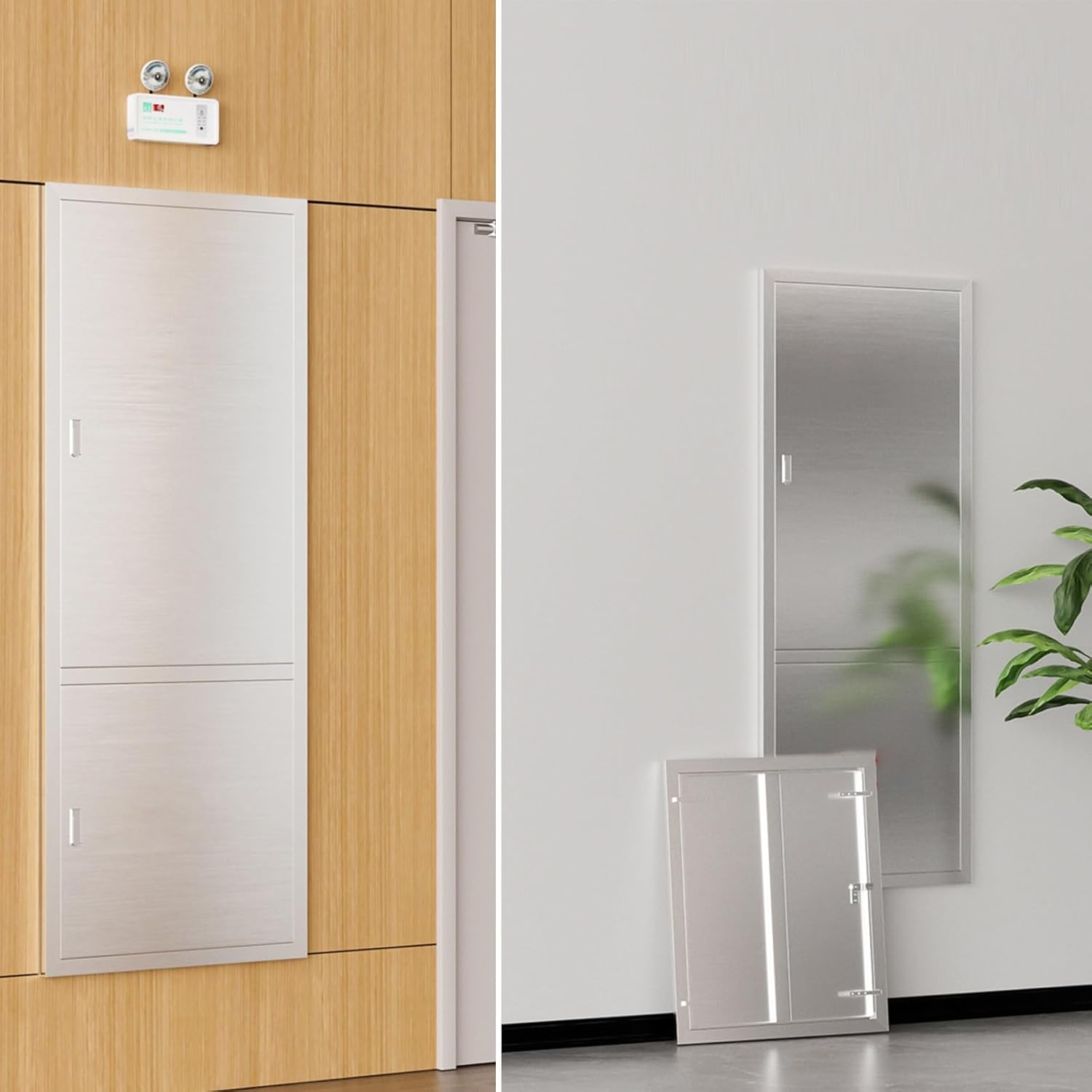 Introducing our Stainless Steel Fire Rated Attic Access Door Wall Hatch Cover Plate with Handle, the ideal access solution for your home or business. This versatile product is perfect for various settings, including residential kitchens, utility rooms, and commercial environments. It discreetly conceals plumbing, wiring, and mechanical components, helping you maintain a clean and organized space. The hatch cover is equipped with a durable metal push latch that ensures quick and effortless access whenever needed. Its thoughtfully designed handle provides a secure and comfortable grip, enhancing usability while complementing the modern aesthetic of your interiors. Whether you're renovating your kitchen, upgrading your home, or enhancing your commercial property, this access door not only offers practicality but also adds a stylish touch to your space. Constructed with fire-rated materials, our access door prioritizes safety while enhancing the functionality of hidden lines and pipes. It serves as a reliable barrier without compromising on design, making it a valuable addition to any property. Choose our Stainless Steel Fire Rated Attic Access Door for a combination of effective coverage and elegant style, ensuring you have a dependable solution for accessing essential services behind walls or cabinetry. Enjoy the peace of mind that comes with a product designed for both performance and aesthetics.