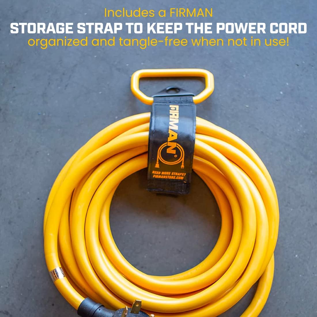 FIRMAN presents a power cord with a TT-30P to TT-30R outlet to supply necessary power at every corner of your home, job site, or campsite. Our power extension cord is designed with a male-to-female connector and 10-gauge 30 AMP wiring and is fully insulated to ensure safety, durability, and long-lasting performance. Suitable for outdoor use, the FIRMAN power cable is 25 ft long and is perfect for powering devices at larger worksites or bringing power to your campsite location. The power cord comes with a storage strap, allowing you to store the cord neatly in minimal space. The storage strap also has a handle for easy and quick transportation. You can also get 2 years warranty along with online technician support. To fit with the look of your FIRMAN generator, this power cord is gold in color.