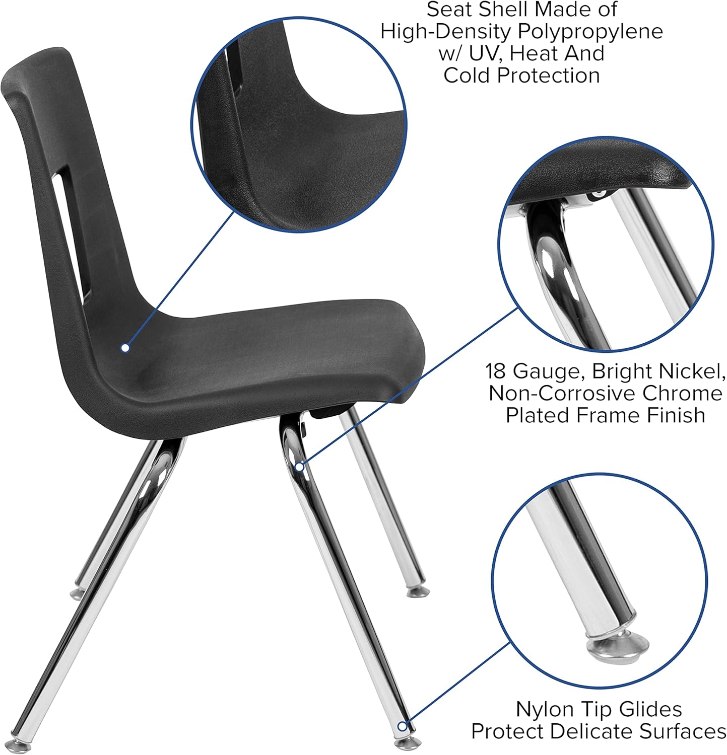 Prepare for a new year by incorporating these modern flexible learning table sets in your classroom that are designed to encourage all students to participate in group learning. You can create unlimited combinations using various shapes and colors. With our ergonomic shell student chairs included there is no need to shop around. Practical for any class setting this school table group will last you for many years with its durable thermal fused laminate top that is scratch, stain and warp resistant. Height adjustable chrome lower legs give you the flexibility to raise or lower the table. Self-leveling nylon floor glides keep the table from wobbling and protect your floor by sliding smoothly when you need to move it. Purchase our pre-built table and chair bundle for your classroom, home, rec center, or other public gathering facilities. The plastic stack chairs with 18" seat height are ideal for middle, high school and college students. You can create a flexible learning workspace out of your conference room to grow work relationships by having teams meet regularly in a group setting.