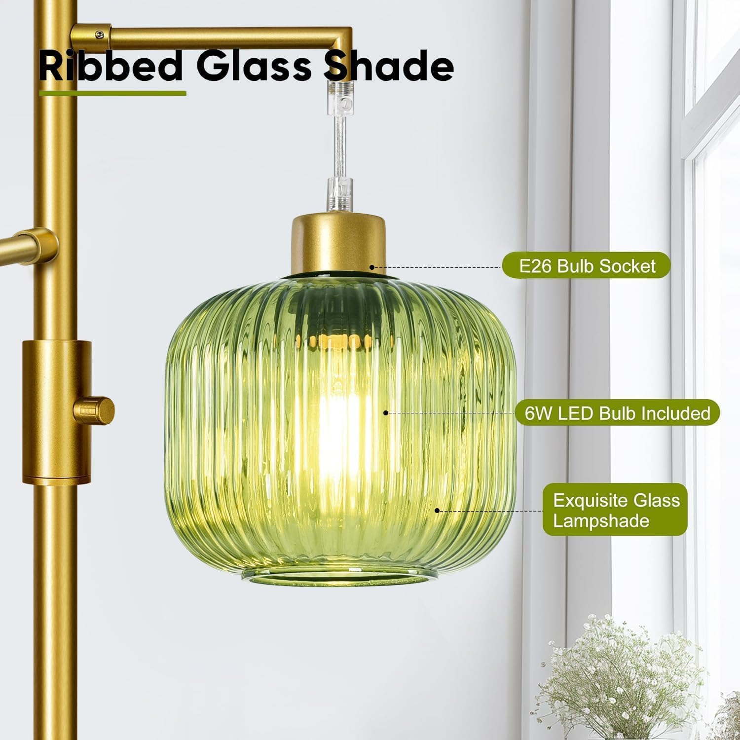 The floor lamp features a soft and beautiful green tone that looks even more elegant when the light is turned off. The green lampshade floor lamp has a sturdy structure and is easy to assemble. As a decorative floor lamp, it adds a lot of refined atmosphere to your bedroom, living room, dining room, study room, etc.Package Included:● 1 x Floor Lamp● 3 x Lamp Shades (green)● 3 x 6W LED BulbSpecifications:➤Height: 69 inches➤Width: 13 inches➤Base diameter: 10.24 inches➤Material: Metal+Glass➤Power source: Corded-electric➤Light source: LED➤Wattage:18W➤Voltage: 120V AC➤Color temperature of Bulb: Warm White 2700K➤Socket: E26