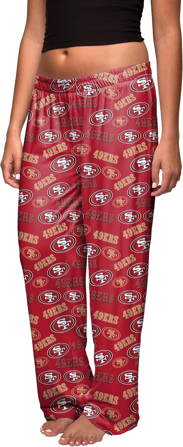 Bring home bold Bay Area style with these FOCO San Francisco 49ers Women’s Scatter Pattern Lounge Pajama Pants, officially licensed by the National Football League. Featuring an all-over scatter pattern of official 49ers logos and wordmarks in scarlet, gold, and white, these pants let you show your team pride in comfort. Made with a 94% polyester and 6% elastane blend, the lightweight material delivers breathable softness and stretch for lounging, sleeping, or everyday use. The elastic waistband ensures a secure yet flexible fit that moves with you. Whether you’re watching San Francisco on game day, relaxing at home, or winding down after a busy day, these pajama pants combine fan spirit with relaxed comfort. They also make an excellent gift for holidays, birthdays, or special occasions, giving 49ers fans a stylish and comfortable way to celebrate their team year-round.
