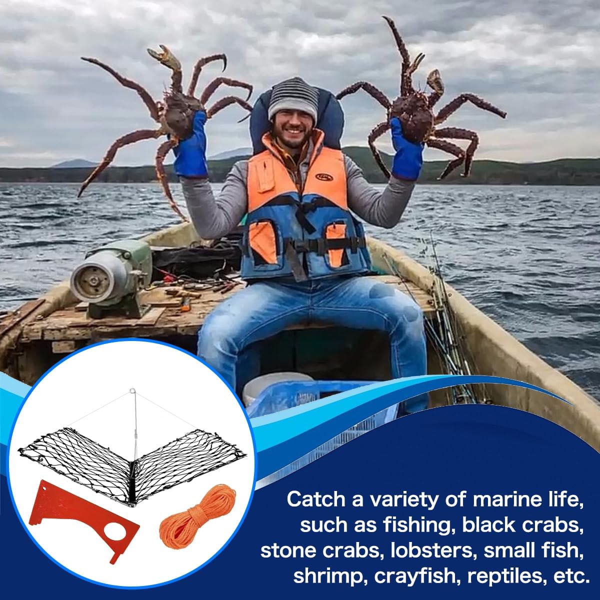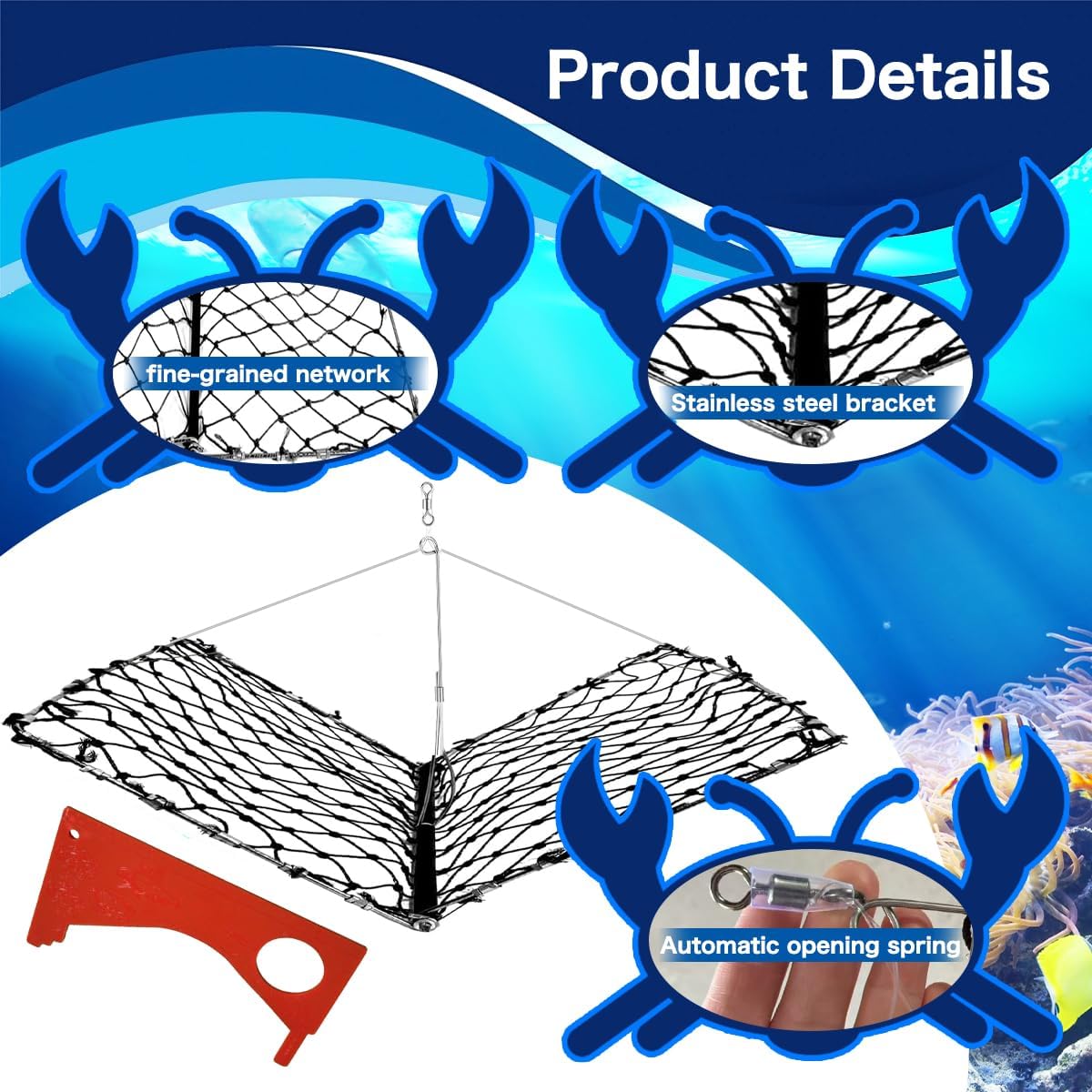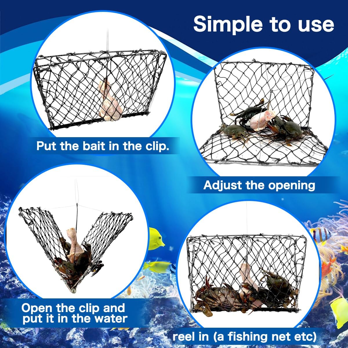 Foldable Crab Trap Castable Crabjaw with Crab Gauge and Bait Clip for Saltwater or Freshwater