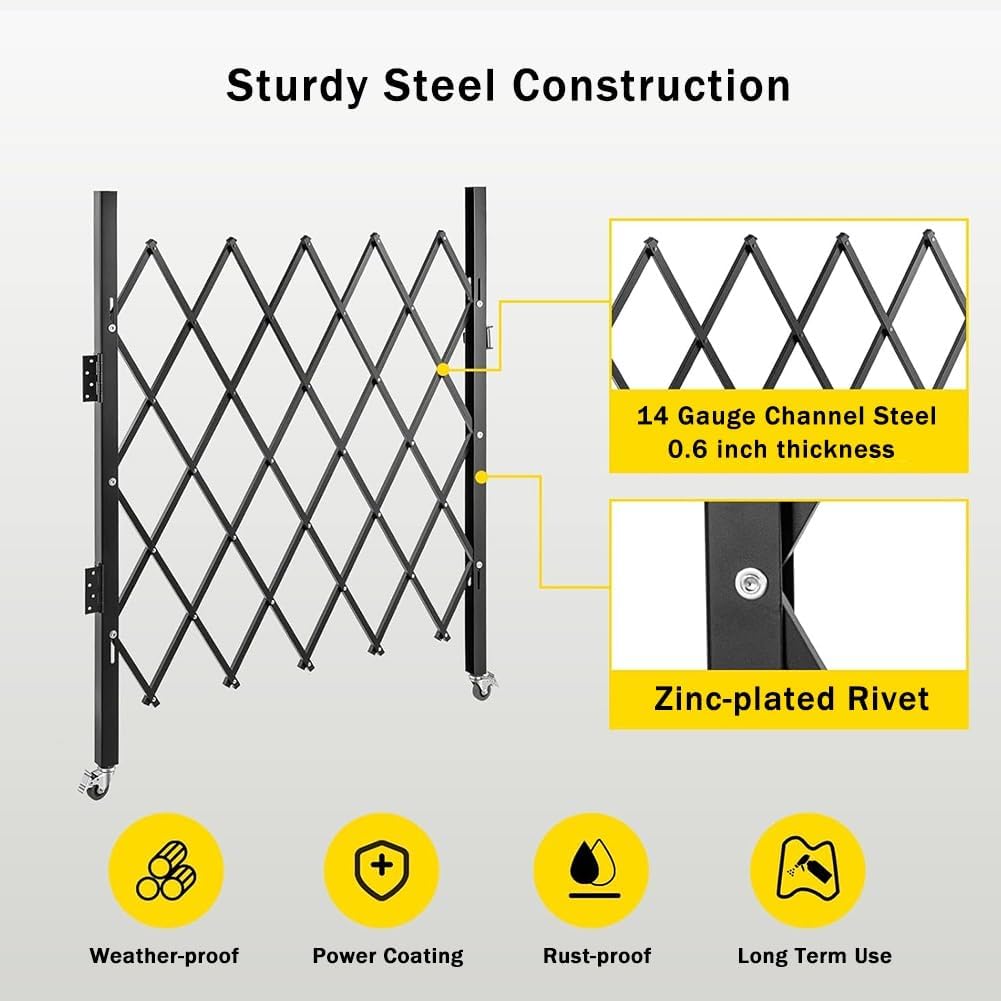 Introducing our premium Folding Security Door, expertly crafted from high-strength G14 channel steel. The sleek black powder-coated finish not only enhances its aesthetic appeal but also provides exceptional durability, ensuring long-lasting performance in high-traffic areas. Designed for versatility, our retractable security door is perfect for securing hallways, entrances, or any commercial space where safety and accessibility are paramount. Whether you're managing a bustling storefront or an industrial facility, this door offers a reliable solution to control access while maintaining a welcoming environment. Specifins: - Material: 14-gauge channel steel for superior strength - Color: Elegant black finish that complements any decor - Finish: Durable powder coating to resist wear and tear - Type: Available in single or double folding designs - Telescopic range: Adjustable from 80 inches to fit various openings Our Folding Security Door not only prioritizes safety but also enhances the functionality of your premises. Its space-saving design allows for easy operation, making it a practical choice for busy environments. Invest in the security and efficiency of your business with our folding door solution, tailored to meet your needs while providing peace of mind. Elevate your security measures today and experience the perfect blend of style, strength, and convenience with our Folding Security Door!