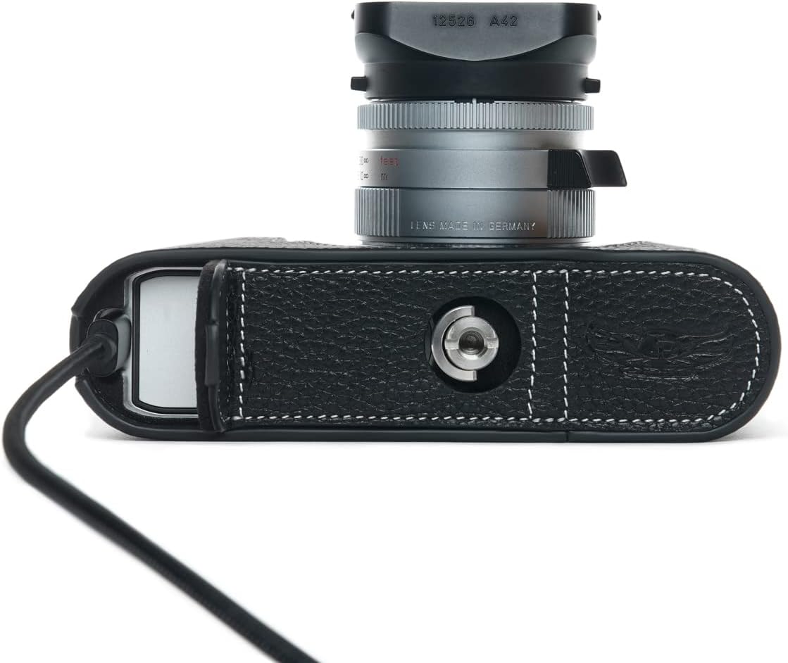 This camera is made by real top layer oil leather, the design is simple and vintage, use Metal sizing techniques make it very fit with the camera body. Inside lining use high lever velvet to protect camera body for scratch and coloration. There is a opening on the bottom for battery, You don't need to take off the half case when you change battery. Under base screw is made by copper and it can easy take off by coin. You don't need to take off the half case when you use tripod. It has a special design for Leica M11 Camera which makes it easy to turn over the Screen and it will totally not affect screen rotation. You don't need to take off the half case when you connect data lines. Content: 1 x camera half case, 1 x Free Genuine Real Leather Hand Strap, camera not included. Material:Genuine leather.