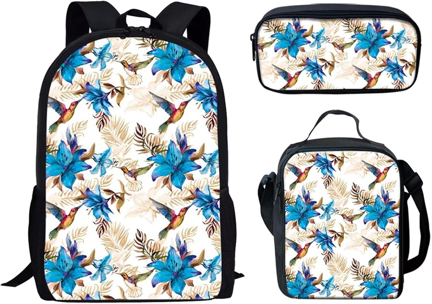 [Features] - Large Capacity 3 Pieces Backpack Set can meet your daily requires for going to school,or out door activities like camping,travling,hiking. - High Quality Polyester is durable,not easy broken.The fabic is breathable and washable,easy to clean. - A Perfect Gift for your children,friends,classmates,stylish and functional,suitable for 5-19years boys girls. [Notes] - Please allow little color difference due to different camera or light environment. - There might be 1-2cm error range due to different measurement methods.