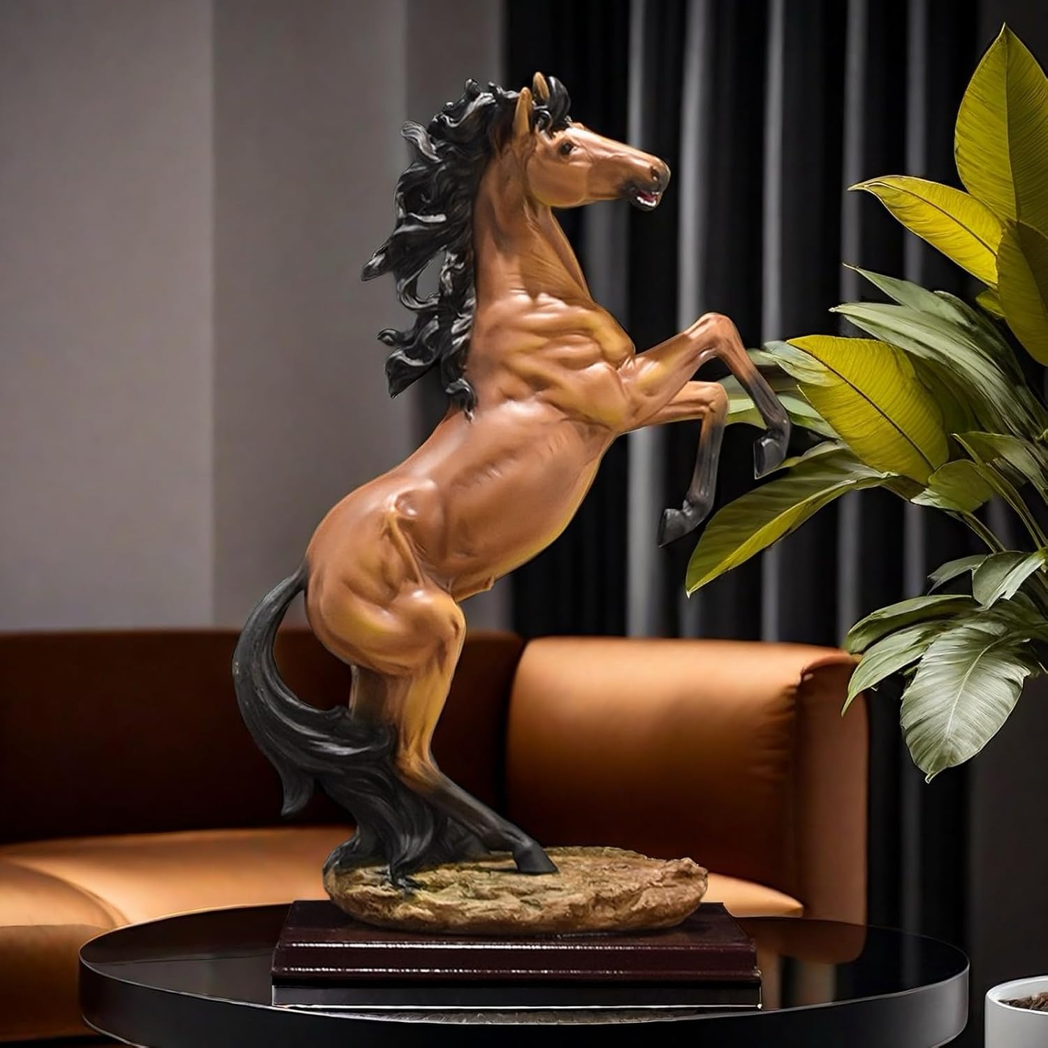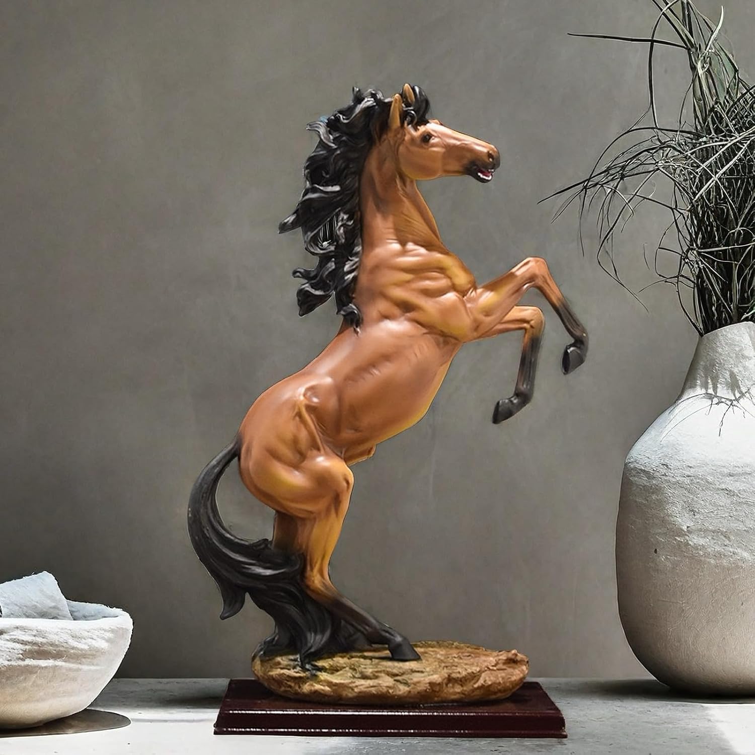 This Horse Statue Figurines Size:about 11.5x 6.5 x 19 Inch.Weight:4.9 LB.Impressive and graceful statue of a standing horse.Great gift idea to any collector or horse lover.Great decor piece for living rooms, bedrooms, basement, foyer, bathroom, indoor, outdoor, interior, exterior, office.Material: Resin.Strong and durable.