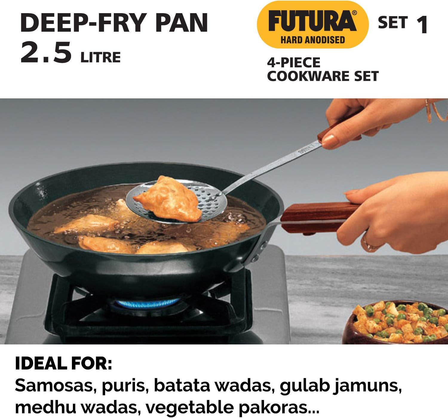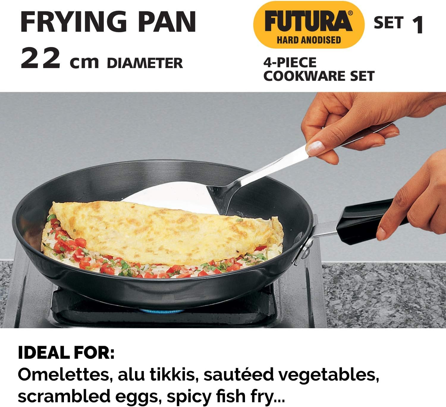 | Included Components | 1-Piece Futura Hard Anodised Tawa (26cm), 1-Piece Futura Hard Anodised Frying Pan (22cm), 1-Piece Futura Hard Anodised Deep-Fry Pan (2.5 Litres), 1-Piece Futura Hard Anodised Cook n Serve Bowl (3 Litres) |