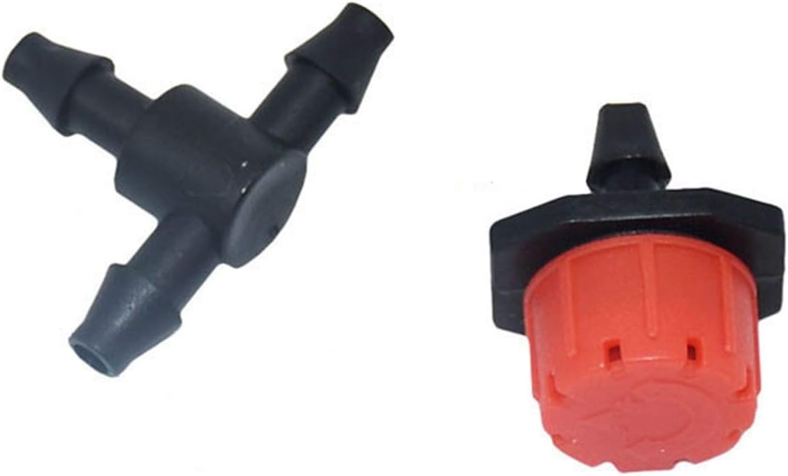 Faucet ValvesIt is very suitable for agriculture lawns gardens courtyards greenhouses flower beds swimming pools etc.Irrigation 8 holes red dripper Adjustable Sprinkler 1/4 tee Barb Connector Fog Connector 4/7 Hose Adapter wateringPacking: 120 drops +120Tee Adjustable flow dripperWater pressure: 1.5-4.0kgWater volume: 1-16L per hourMaterial: High quality PP plastic
