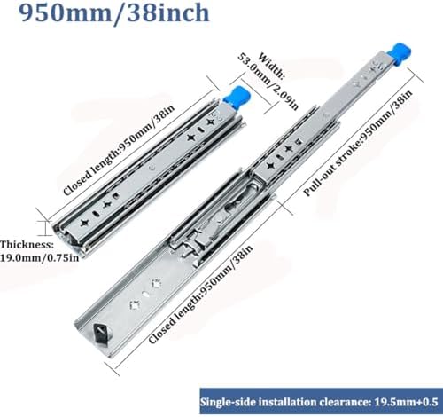 Full extension drawer slides Low noise, smooth sliding and lockable Cold rolled steel drawer slides have high hardness, excellent stability and durability. In addition, you will benefit from ultra-safe, suitable and low noise equipment. Detailed guides and convenient screws are also included. Common places are cabinet warehouse containers, industrial drawers, commercial equipment, modified vehicles, etc. Main Features With locking function Includes inner slide, middle slide and outer slide. Gently pull up/pull down the locking handle to lock/unlock the extension drawer slide. Quiet design details Nylon buffer can reduce direct contact between the outer and inner channels. Ball bearing action can create a quiet environment when working. Cold rolled steel High-grade cold rolled steel with galvanized surface can effectively prevent the drawer rails from scratching, deformation and rusting. Appropriate size chart Please refer to the above guide to select the appropriate size of drawer slides. The length of the slide cannot exceed the depth of the cabinet. Easy and quick assembly During installation, the bolts between the slide and the drawer are best tightened from the outside to the inside. The bolts between the drawer and the cabinet should be fastened from the inside to the outside. Wide range of uses Side-mount drawer slides are suitable for a variety of applications: shelves, cabinets, industrial drawers, RVs, trucks, vending machines, etc. Specifications Color: Silver Material: Cold-rolled steel Surface: Galvanized Quantity: 1 pair (2 pieces) Load capacity: 260 lbs / 120 kg