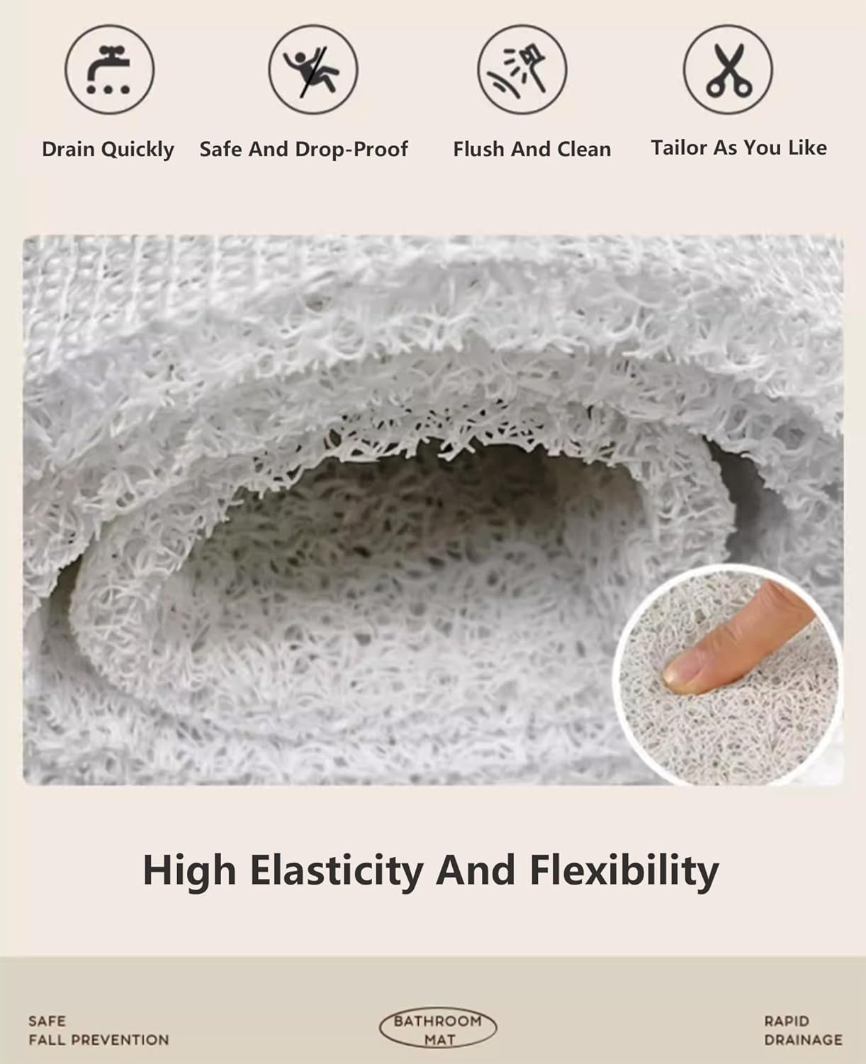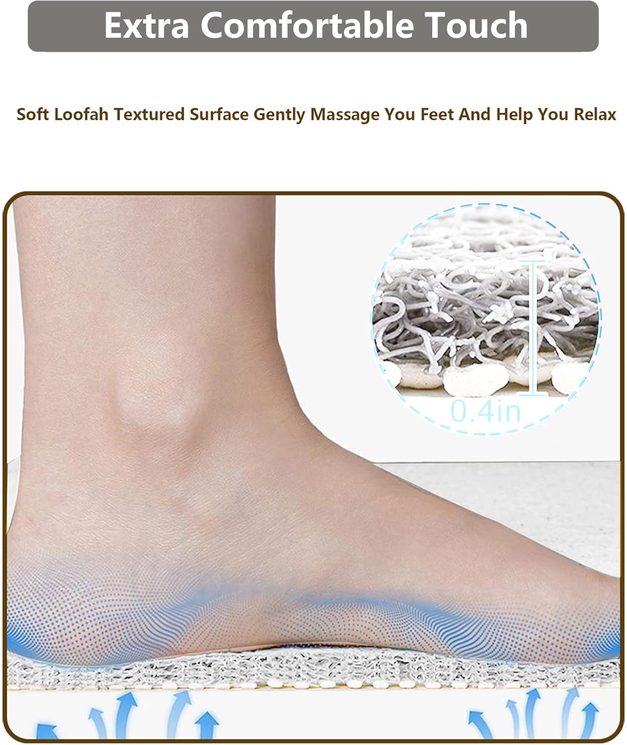 Corner Shower Mat with Drainage Holes, PVC Loofah Curved Bath Mat Non Slip , Non Slip Shower Mats for Inside Shower Non Slip Bottom Our curved shower mat has a more practical, anti-slip lattice layer which stays the tub mat firmly in place, thus ensuring the of your family. Comfortable Foot Feel Made of materials, the soft provides a comfortable support and protects feet from cold floors and ensure services for all season Design and Clean Enjoy comfort and softness in the shower with our loofah shower mat. Porous structure never intercepts the foam and water flow, which decides this mat is easy to clean, wash and uneasy to get terribly