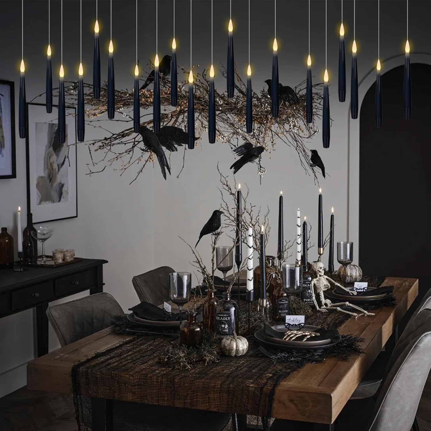 GenSwin 22pcs Flameless Floating Candle with Magic Wand Remote Timer, Battery Operated Hanging Window Candles Flickering, 6.1" LED Electric Candles for Christmas Halloween Decorations(Black)