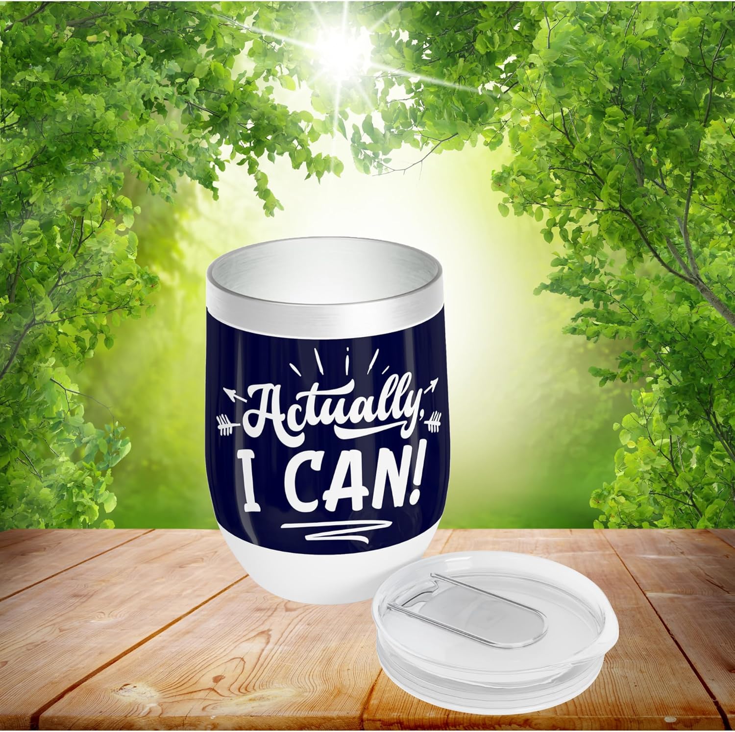 Ignite your confidence with our 12 oz. Stainless Steel Insulated Tumbler, featuring the powerful message: "Actually I Can." Perfect for motivation and encouragement, this tumbler is a daily affirmation of your capability and determination. Crafted from premium stainless steel, this tumbler combines durability with a sleek, modern design. Its double-wall insulation keeps your hot beverages warm for up to 6 hours and your cold drinks chilled for up to 12 hours, ensuring that your favorite beverages are always at the perfect temperature, whether youโre powering through a busy day or enjoying a well-deserved break. The empowering phrase "Actually I Can" serves as a daily boost, reminding you of your inner strength and potential. The 12 oz. size is versatile, fitting comfortably in most cup holders, making it ideal for use at home, at work, or on the go. Featuring a spill-resistant lid, this tumbler allows you to enjoy your drink with confidence, no matter where your day takes you. Itโs also reusable and easy to clean, providing an eco-friendly alternative to disposable cups and helping you make a positive impact on the environment. Celebrate your ability to overcome challenges and achieve your goals with our 12 oz. Stainless Steel Insulated Tumbler. Perfect for daily motivation and emotional support, itโs the ideal companion for anyone ready to affirm their strength and capability. Order yours today and enjoy every sip with a boost of confidence!