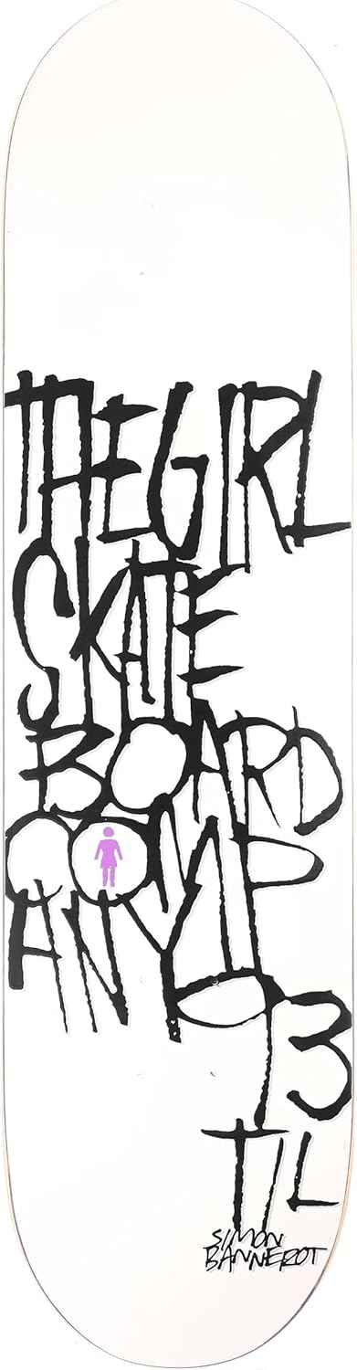 The G026 Shape. Fuller nose, slightly pin tail, straight rail. A variation of G023. Constructed with 7-Ply North American Maple. Measures 8.125" x 31.625" with a 14" wheelbase. Assorted Color Top Stains. Also includes a sheet of Black Diamond Griptape.