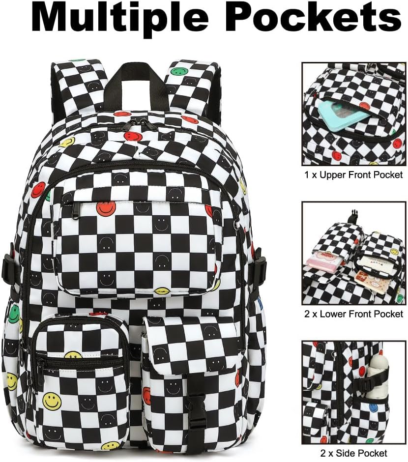 This stylish and functional backpack is designed for girls in grades 3 through 12, combining practicality with adorable aesthetics! Made from lightweight yet durable polyester, it ensures long-lasting use for school, travel, or daily adventures. The backpack size is 42x30x16cm (16.5 "x11.8" x6.3), with 2 main compartments, 3 small pockets in the front, and 2 side pockets.