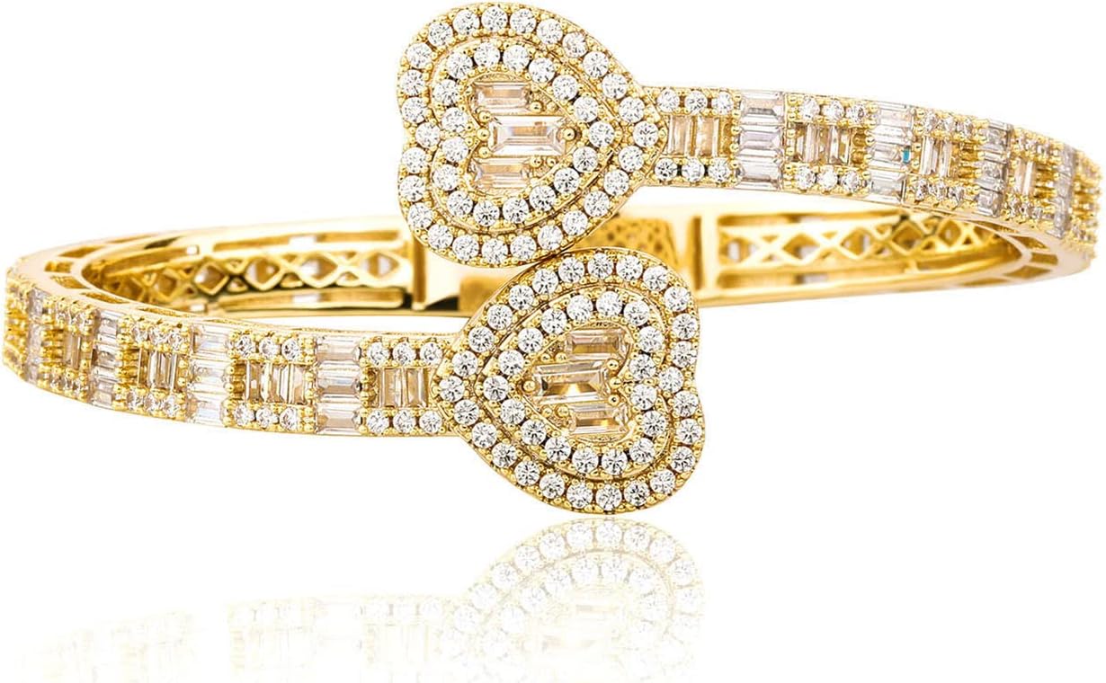 Our Heart Rhinestone Bangle, Baguette Heart Cuff Bracelet, and Heart Zircon Bracelet are exquisite examples of elegance and beauty. These bangles and cuff bracelets are embellished with sparkling cubic zirconia and are available in gold, silver, and rose gold finishes. They are an excellent choice for wedding jewelry, bridesmaid gifts, or fashionable women's bracelets. The delicate gold-plated women's bracelets and silver men's bracelets make fantastic presents for any occasion. The Heart Cuff Bracelet and Rhinestone Bracelet are perfect for adding a touch of glamour, while the iced out bracelet for men makes an excellent statement piece.