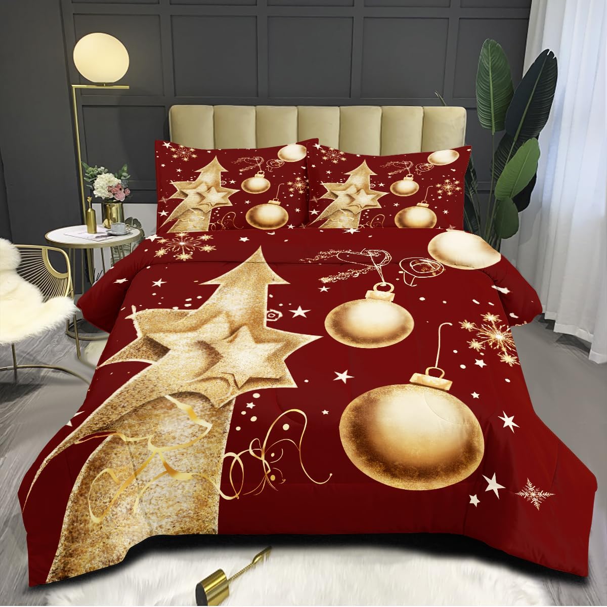 [Material Selection] This Christmas comforter set queen size is made from super soft microfiber and filled with 250g imported fiberfill. It’s lightweight, breathable, and soft, ensuring you won’t feel stuffy or sweaty during summer or winter. This Christmas comforter set can adjust your body temperature, providing more comfort and improving your sleep quality. [The Design] Our Christmas bedding set use the latest 3D printing technology to create crisp, colorfast patterns that won’t fade, using safe odorless dyes. The U-shape stitching ensures the microfiber filler is sewn tightly to prevent clumping or shifting. With a wide range of colors and styles to choose from, these unique patterns are suitable for all types of interior decor, including vintage, modern, farmhouse, ethnic, sports, romantic, and more. Perfect gifts for children and teens during holidays, New Year, Valentine’s Day, and Christmas. [Size] full Size: Christmas comforter (79" x 90"), 2 pillowcase (20" x 30"). king Size: Christmas comforter (90" x 104"), 2 pillowcases (20" x 36"). queen Size: Christmas comforter (90" x 90"), 2 pillowcases (20" x 30"). twin Size: Christmas comforter (68" x 86"), 1 pillowcases (20" x 30"). Tips The Christmas comforter set queen size are only printed on the front; the back is soild. [Cleaning Method] Our Christmas bedding set for girls is machine washable, saving you time and energy. Wash gently in cold water and tumble dry at low temperature. Do not bleach. [Satisfaction Service] We are committed to providing high-quality, comfortable and beautiful bedding set so that everyone can enjoy a quality sleep in their bedroom at home. We offer exchange service. If you encounter any issues, please contact us promptly. We will process your request as soon as possible within 24 hours.