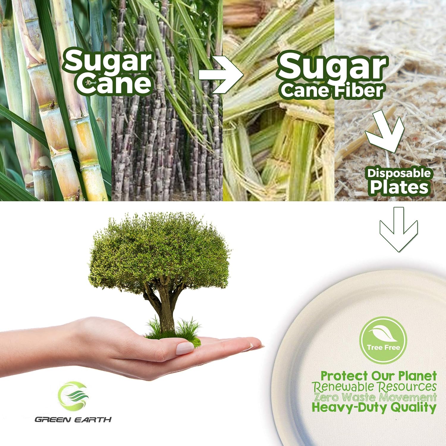 Protect the environment by choosing to use these Green Earth Brand Plates. Made from sugarcane fibers and free of un-natural dyes and colors, these plates are the ecofriendly alternative to styrofoam and plastic. BPI (Biodegradable Products Institute) certified compostable in industrial facilities, not suitable for backyard composting. Bagasse is one of the best materials when it comes to handling hot temperatures. It is the perfect way to serve meals and not waste water and resources. These plates can hold both wet and oily food without becoming too weak. Suitable for indoor and outdoor events and parties. Product Includes:-500-count 9 inch Round Bagasse PlatesClean and Green is our Perfect Dream.