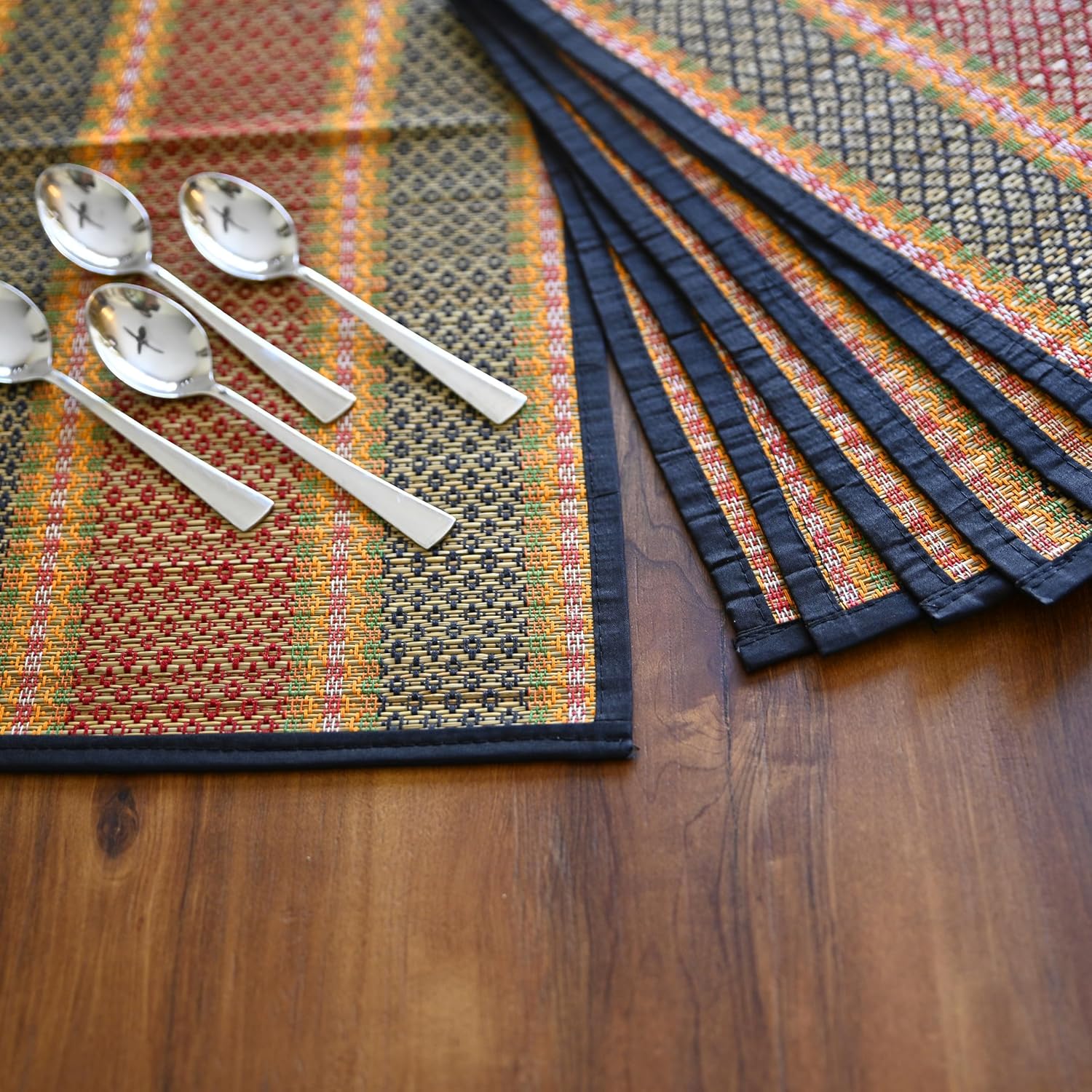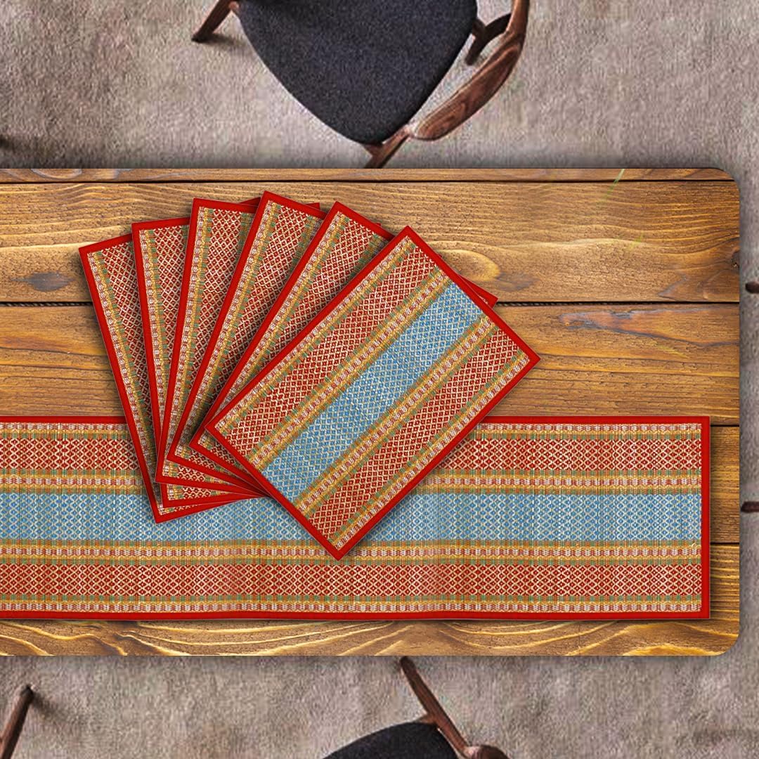 HANDCRAFTED WITH CARE: Each placemat and table runner is meticulously handwoven by skilled artisans, making each piece unique and one-of-a-kind. The intricate weaving patterns showcase the beauty of traditional craftsmanship.