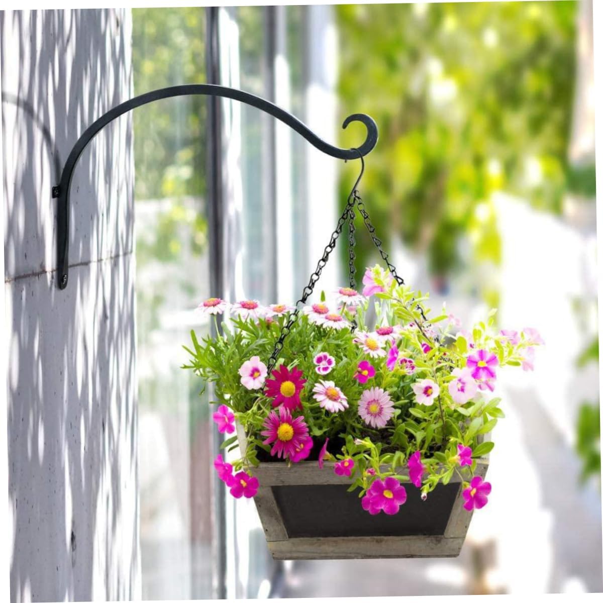 12 Inch Heavy Duty Hanging Basket Brackets for Outdoor and Indoor, Wall Plant Hanger Hooks for Home Garden Decoration PLANT POTS The beautiful flower in the pot can release unparalleled elegance in your garden, make it more colorful and charming WIND CHIMES The retro hanging wind chimes are hung in the air and become a charming landscape in your home BIRD'S HOME The high bearing capacity and high stability of the basket bracket give the bird's home more sense of security CORRIDOR DECOR Neatly arranged in the corridor for this wall hanger, bring extremely comfortable feel for people HANGING LIGHTS The lights bracket hanging lamp not only decorates the road, but also reflects its practicality, illuminating your way home SPECIFICATION Size: 12inch/30cm x 8inch/20cm (L x H) Material: Cast Iron Steel Color: Black Screws size: 1.38inch Wall Anchors: 1.18inch Max Load Capacity: 60lbs PACKAGE INCLUDED 2 X Hanging Bracket Package Including 2 X Hanging Bracket