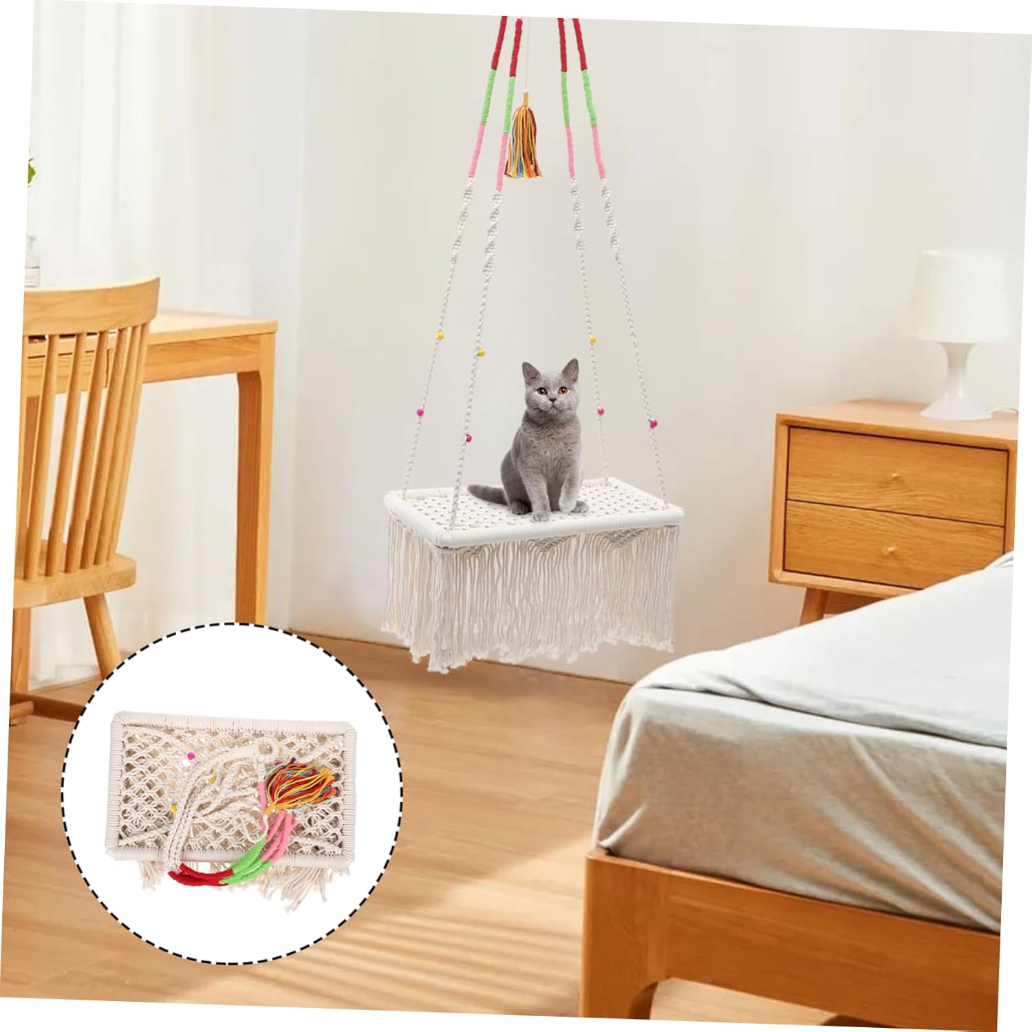 Package Include 1 x Cat Hammock Characteristics - Size: 150.00X44.00X28.00cm/58.95X17.29X11.00in hanging kitten bed -Color:Colorful hanging cat swing bed -Material:Cotton Rope, Iron macrame cat hammock - This hanging hammock designed with hanging hole, provide huge convenience for you to install it kitten supply. - It is supple, breathable and comfortable to give your cat a good use experience hanging cat house. - This hammock creates a living environment for pets to decorative cat nest. - Not easily to break or deform with long time use, safe for use, long serving life kitten accessory. - Add more enjoyment, stimulation, fun and excitement to your life household cat hammock.Goods Descriptioncat nest You can also give it to your family and friends who raise the cat.kitten macrame cat hammock Do you want to have a cat sleeping bed? Then, our hanging cat sleeping bed is one of the choices for you.wear-resistant cat bed With this sleeping bed, your cat will be warm and comfortable