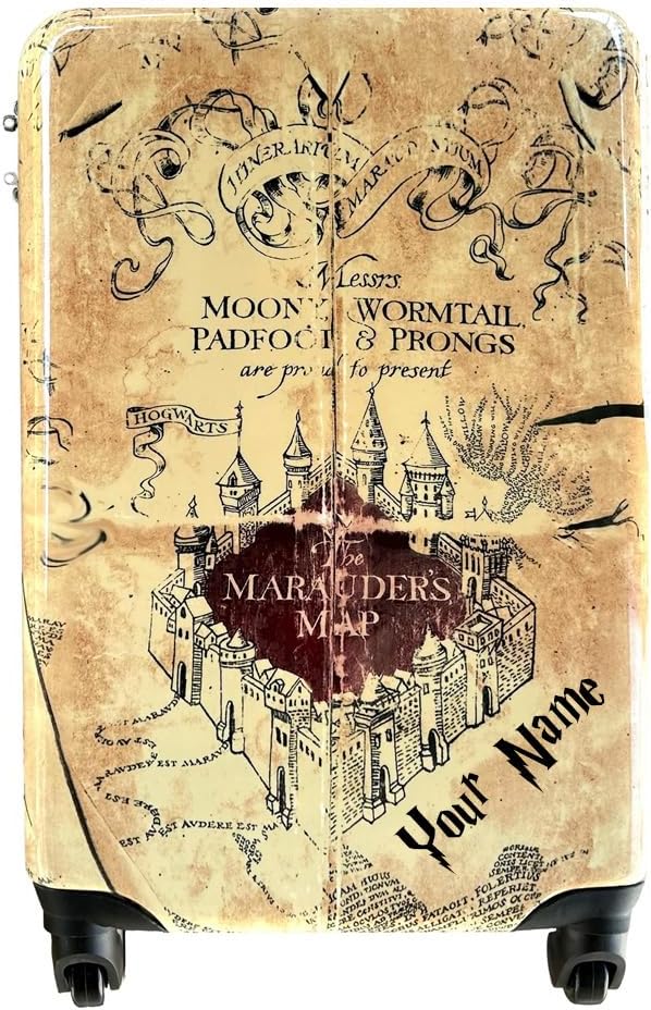 Take your travel adventures to the next level with the officially licensed Harry Potter Marauder’s Map Rolling Luggage! This 20-inch spinner suitcase captures the magic and mystery of Hogwarts with an authentic design inspired by the Marauder’s Map — a must-have collectible for every devoted wizard and witch. The exterior features a durable, glossy hard-shell finish that showcases intricate artwork of the castle, scrollwork, and classic parchment tones that make it look straight out of the wizarding world. Whether you’re exploring Diagon Alley or heading off to a weekend getaway, this carry-on is designed for both style and performance. Crafted from lightweight, impact-resistant ABS material, the luggage offers superior durability without weighing you down. The 360° spinner wheels and telescopic handle ensure smooth and effortless movement through airports, train stations, and magical portals alike. The interior features fully lined compartments, cross straps, and a zippered divider — keeping your belongings neatly organized and secure no matter where your adventures take you. Add your personal touch with included customization — personalize your luggage with a name, initials, or phrase to make your suitcase unmistakably yours. This makes it an ideal gift for Harry Potter fans, collectors, and frequent travelers alike. With its magical design and practical travel features, the Harry Potter Marauder’s Map Rolling Luggage lets you travel like a wizard and stand out from every Muggle crowd. Mischief managed!