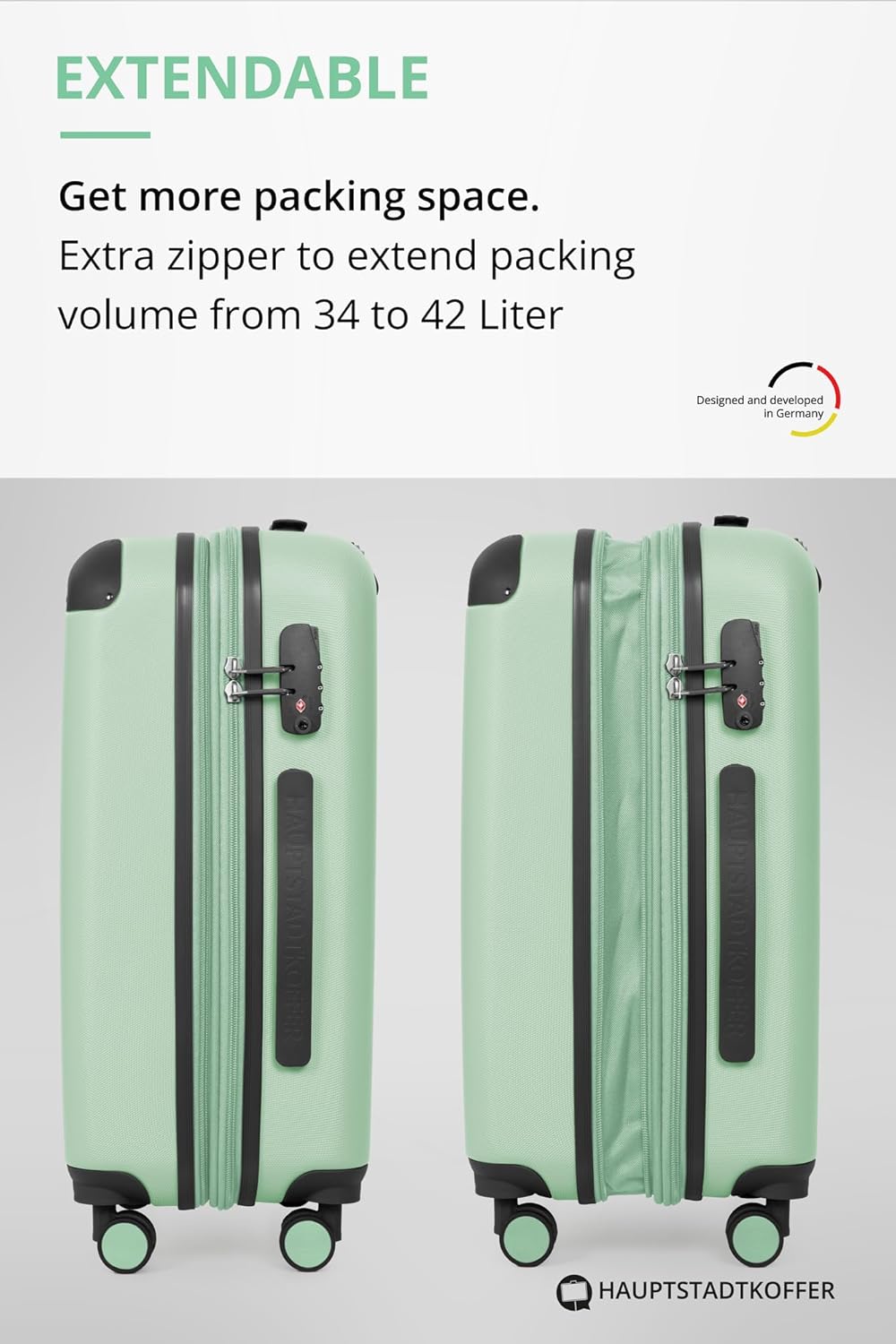 HAUPTSTADTKOFFER - Spree - Carry on luggage Suitcase Hardside Spinner Trolley Expandable 55 cm TSA. Our products are creative, unique, trendy, innovative, distinct and vibrant team, just like Berlin itself. We love adventures, communities, easy and effortless trips - We are here to wake up your desire to travel. Our products are robust, original, affordable and good looking.