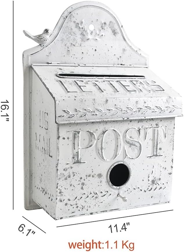 Retro mailbox: use this retro mailbox to add and charm to your home decoration!Farm design: flip top, opening and closing, appearance and touch. Charming rural appearance and design!Decoration : it can be hung on any wall in the home or outside the porch or in the garden!Paper can be inserted into the top opening, and the large opening can be locked to ensure the safety of mail;Dimensions: 16.3 "H x 11.41" W x 5.1 "D;Type: Garden: Wall MountedMaterial: MetalNote:Please allow slightly error due to manual measurement.Due to the difference between different monitors, the picture may not reflect the actual color of the item.It can be used both indoors and outdoors.