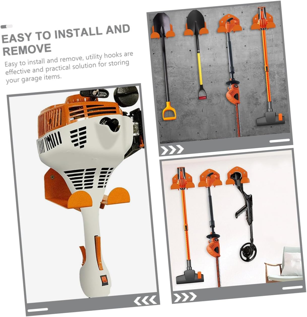 Package List 2 x Lawn Mower Hangers 6 x Screws 6 x Expansion Tubes Features -Material:Metal -Size:23.00X12.70X7.20cm/9.04X4.99X2.83in -Color:Orange -Product Info:Heavy Duty Lawn Mower Rack - The sturdy metal construction provides exceptional durability and longevity, ensuring this garage hook can be used for a longer time heavy duty hook. - Utility storage hooks can help you to storage many garage tools, can be used in the garage, garden, shop, basement, or warehouse garage hangers. - This hanger is perfect for storing both lawn mowers and other items as needed, a must-have tool for any homeowner or garage hooks. - With its robust construction and convenient design, this lawn mower hanger is portable to store heavy duty items garage hooks heavy duty. - The sleek and modern design complements any decor, making garage hanger a great addition to your home or garage wall hooks heavy duty.Goods Descriptiongarage storage hooks heavy duty , saving you valuable space.heavy duty hooks Its multi-functional design allows you to suspend various garden tools, such as shovel, broom, lawnmowers, etc.garage hangers These wall-mounted garage storage hooks are perfect for keeping your garage organized and clutter-free
