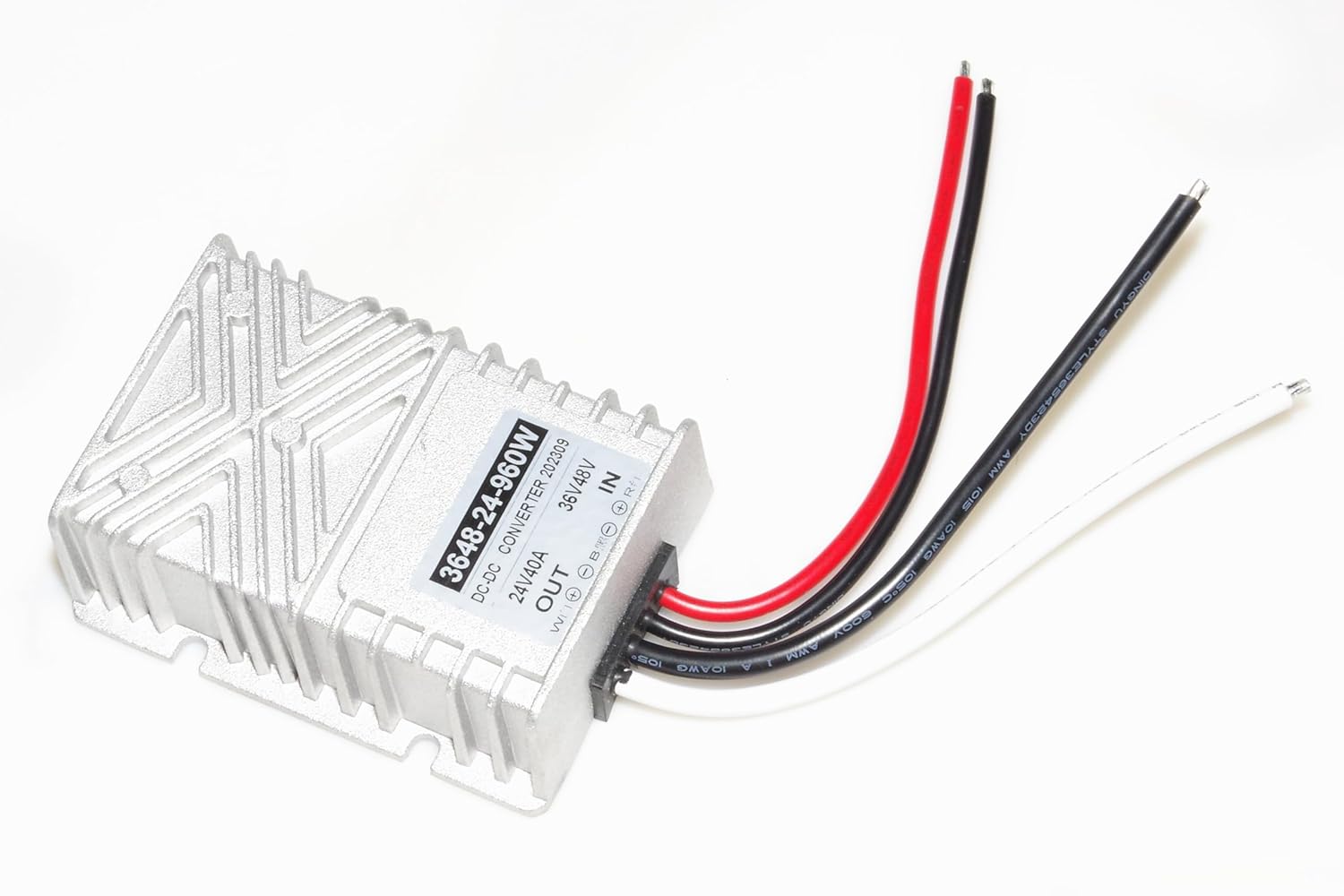 1. 100% full power and stable current output, non-isolated module. 2. Waterproof level IP68 and anti-shock protection, Ultra compact size, light weight. 3. Industry grade DC 24V to DC 12V step-down converter, efficiency up to 95%. 4. Die-cast aluminum shell, epoxy potting, cooling by free air convection. 5. Protections: Over-current, Over-voltage, Over-temperature, Over-load and Short-circuit, auto-recovery when device is back to normal operating. 6. Certificates: CE/RoHS, 1 year warranty, lifetime up to 100,000 hours. Specifications: * Input Rated Voltage: DC 24V * Input Voltage Range: 30-60V DC(Long time use: DC 32V-55V) * Output voltage: DC12V 60A * Output Rated Power:720W * Efficiency: 97% (half load); 95% (full load) * Output Peak Power: 750W * Voltage Regulation: Less Than 1% * Load Regulation: Less Than 2% * Ripple(full load test): Less Than 100mV * No-load Current: 50mA-60mA * Total Size: 180*127*63mm(L*W*H) * Weight: 1650g Package included: 1 x DC 36V 48V to DC 12V 60A Voltage Converter