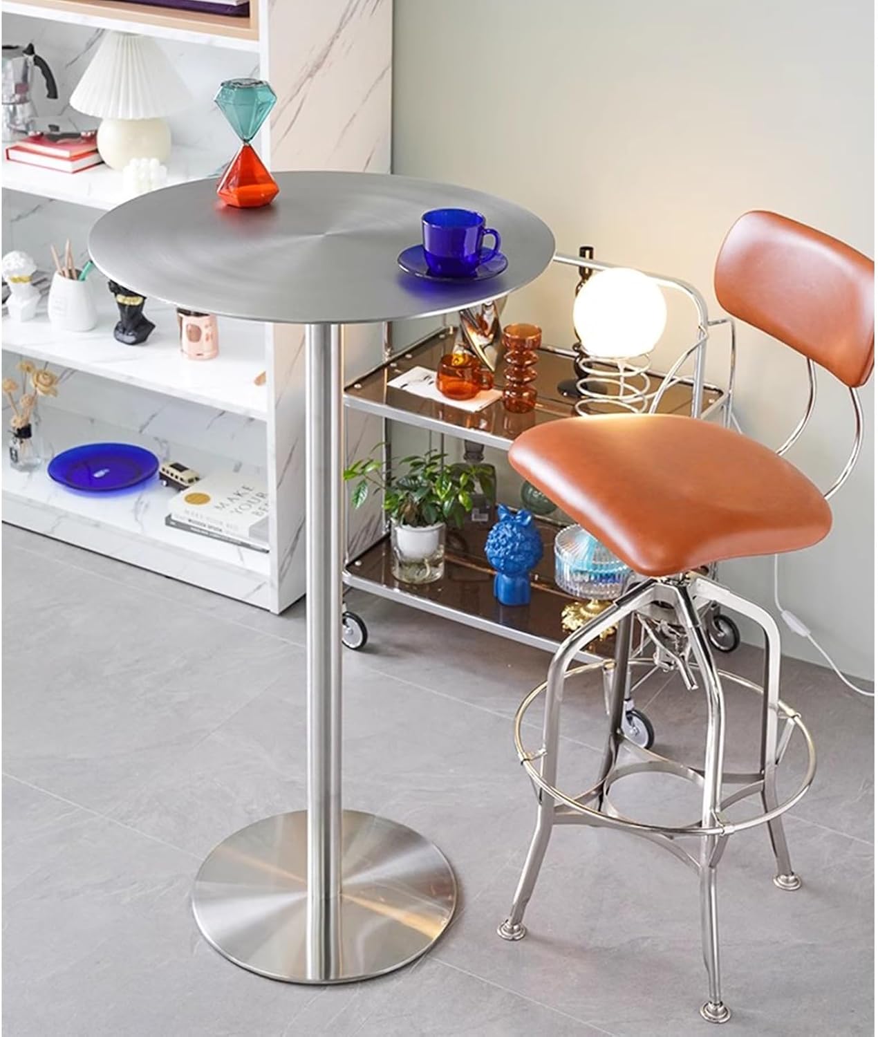 This bar completes your indoor or backyard furniture set, creating a modern look that turns your living room furniture into a functional piece of art and takes your room decor to the next level. It has an ergonomic top design making it stylish and comfortable. Durable, stable and stylish metal base. Modern style and truly comfortable bar counter brings you a comfortable experience and can be placed in your dining room, kitchen, living room, office, cafe and more.Please note:- There may be slight errors in size due to actual manual measurement.- We only sell the bar table, the decorations in the product photos are not included.