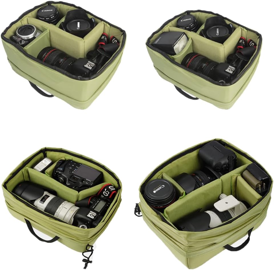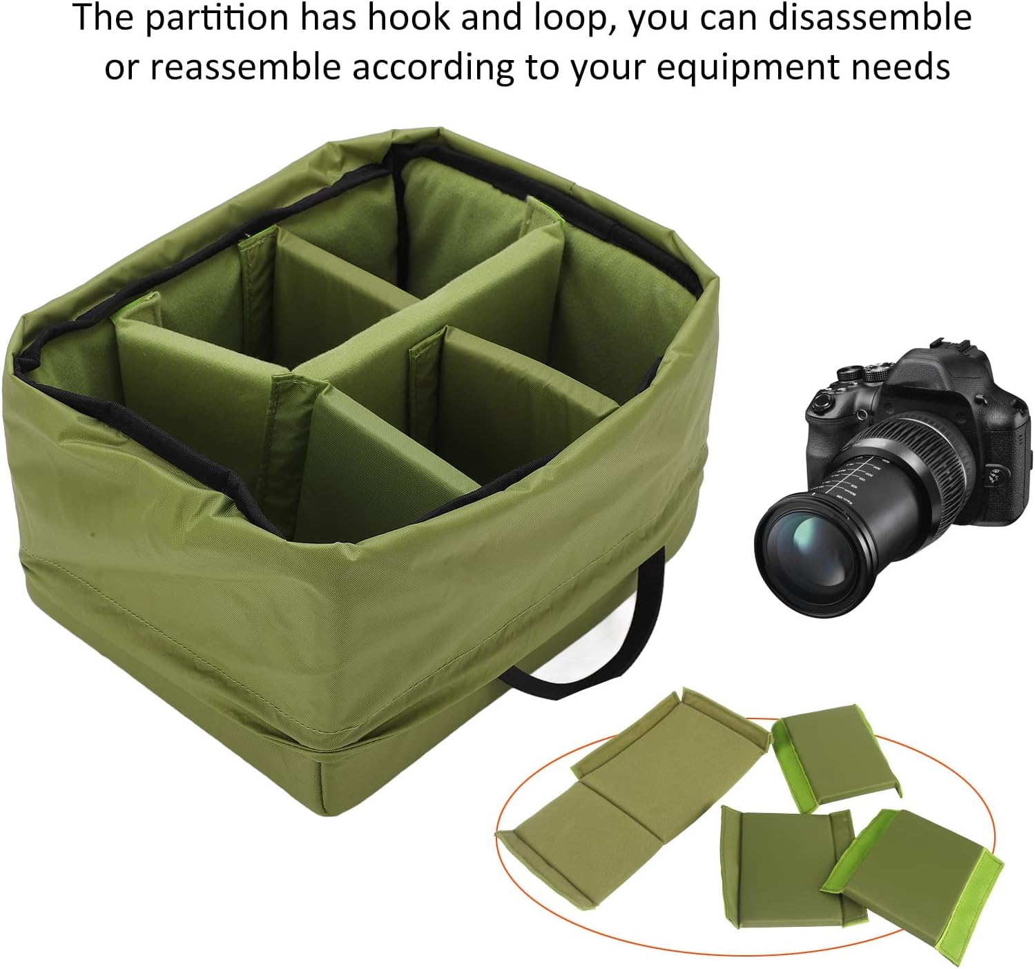 Specification: Item Type: Partition Camera Padded Bag Material: Nylon Product Color: Green Bottom Length: Approx. 26cm / 10.2in Bottom Width: Approx. 20cm / 7.9in Height: Approx. 14.5cm / 5.7in Opening Length: Approx. 28cm / 11.0in Opening Width: Approx. 21cm / 8.3in Product Weight: Approx. 241g / 8.5oz Function: , Wear , Shockproof Applicable Products: Suitable for DSLR SLR camera Package List: 1 x Camera Bag