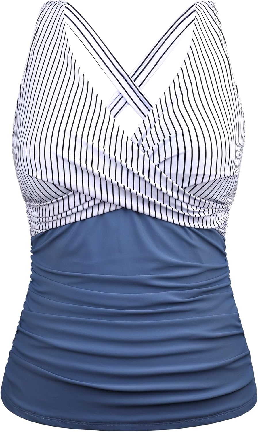 Hilor Underwire Push Up Swimsuits for Women Wrapped Cross Swim Top Ruched Tummy Control Tankini Bathing Suits OUR MATERIALS: Solid Color: 80% Polyamide and 20% Spandex; Floral Color: 85% Polyester and 15% Spandex; Inner Material: 92% Polyester and 8% Spandex. Soft, light-weight, breathable and comfortable. The fabric of swimsuit is remarkable at good elasticity, do not discolor, abrasion resistance, crease and heat resistance. This soft fabric is exceptionally gentle on the skin. Feature: High quality, soft, durable materials, Hilor quick-drying swimsuit brings you the most comfortable wearing experience. Modest tankini top only, fully lined swimsuit for women, power mesh front lined for concealing your little tummy, soft back lined for avoiding exposure. Retro tankini tops for women, sold as top only, suitable to match bikini bottoms, tankini bottoms, swim briefs, boy leg shorts, swim skirts etc. Service guarantee:Please feel free to contact us if you have any question, we will respond you in 24 hours and try our best to improve your shopping experience. Washing Tips:Hand wash with cold water (under 30 degree). Hang dry; avoid dryer. NOTE:This product only has swim top, if you need suit or bottom, please click on the store to buy. Occasion: Hilor tankini swimsuit top is suitable for many activities,like pool party, beach, water park, surfing, ect. Brand:Hilor Package included: Tankini Top*1